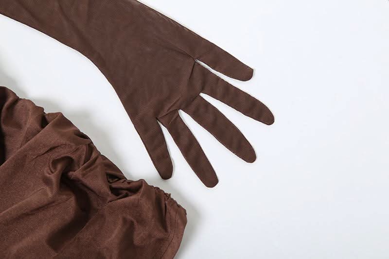 Long sleeve gloves mesh ruched patchwork mini dress