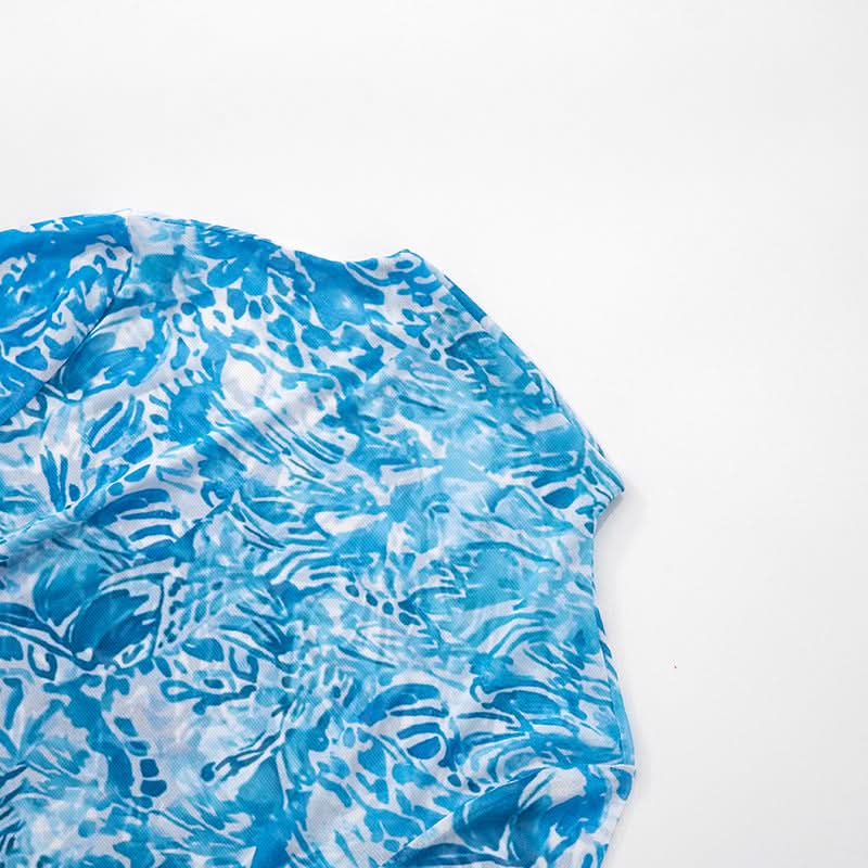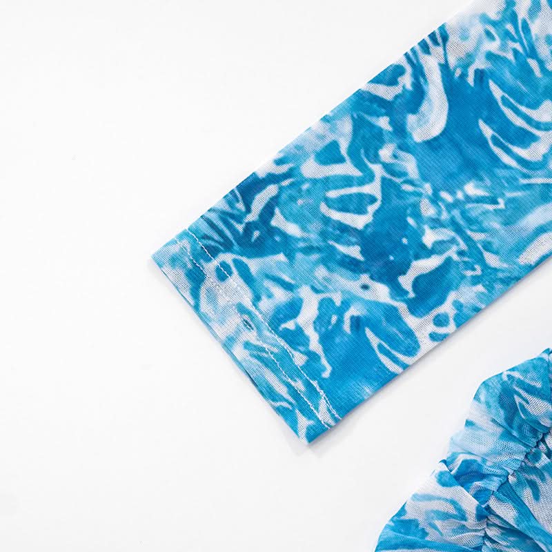 Long sleeve high neck mesh starfish applique mini dress
