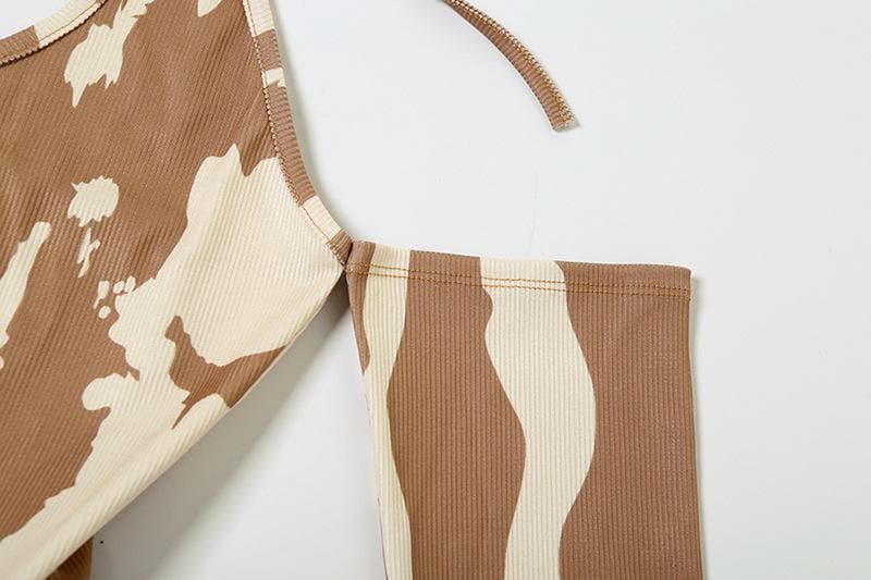 Long sleeve hollow out halter self tie ribbed cut out mini dress