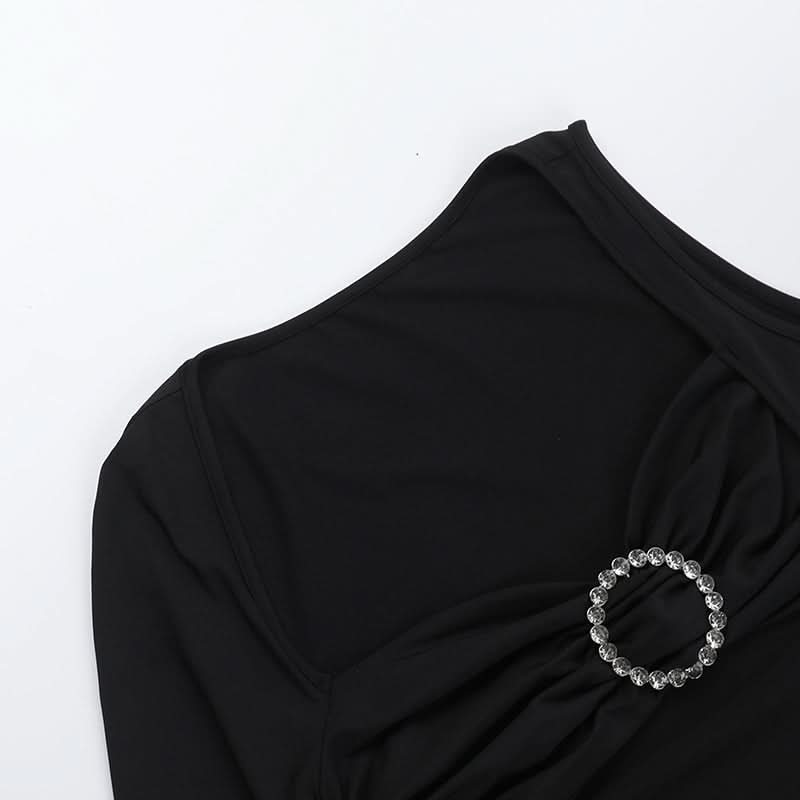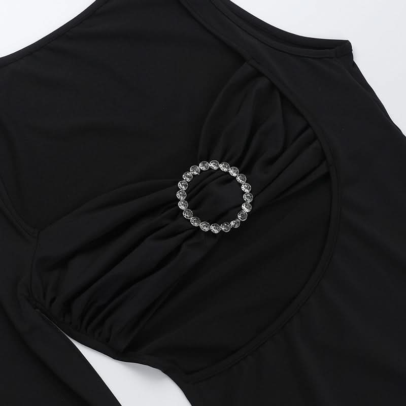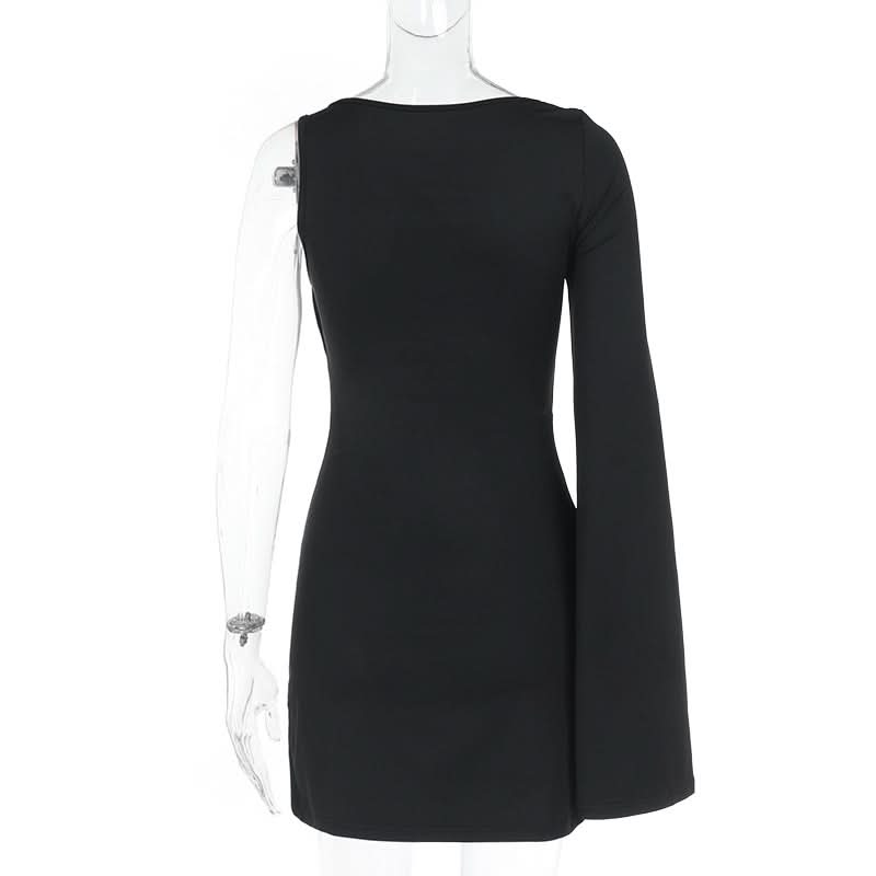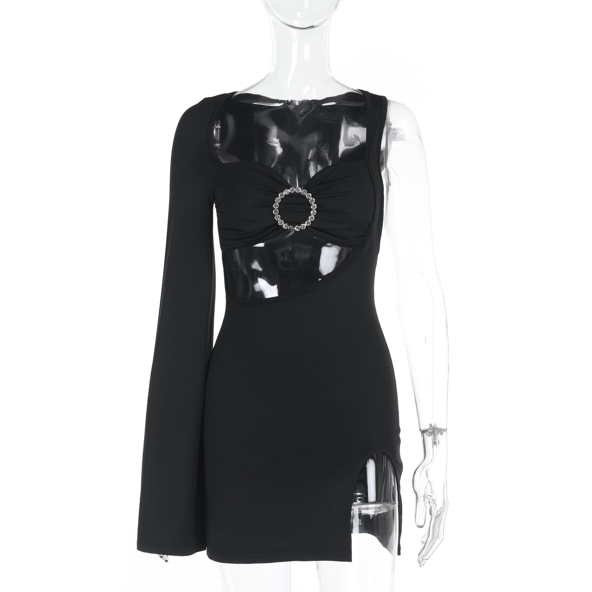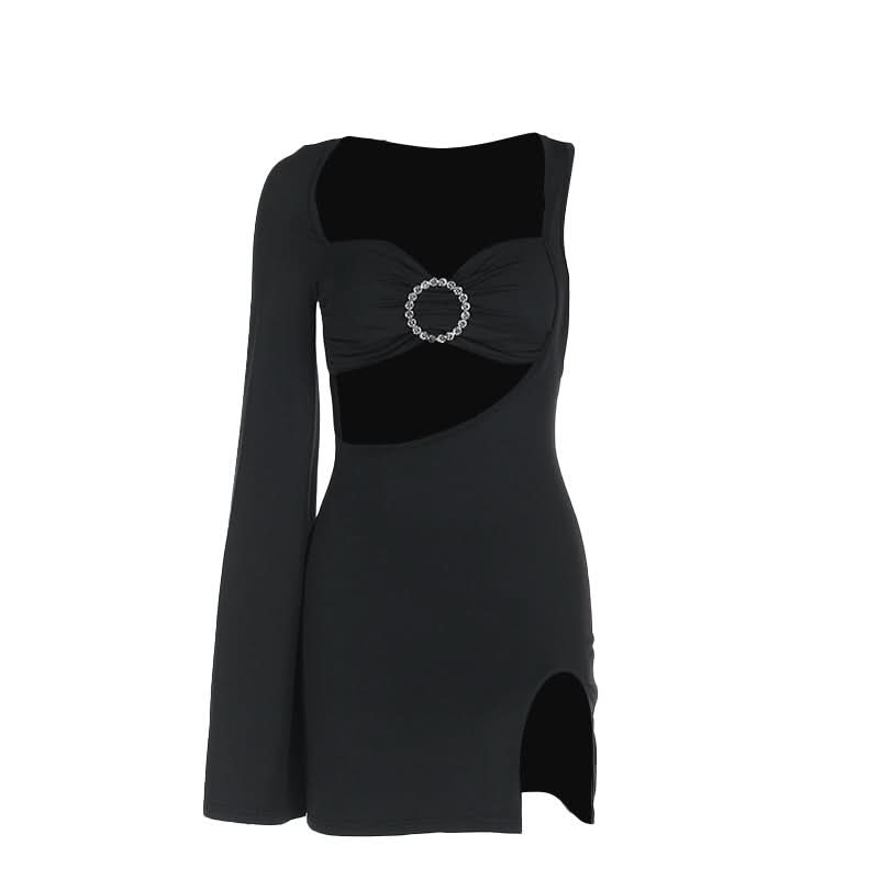 Long sleeve irregular slit hollow out cut out mini dress