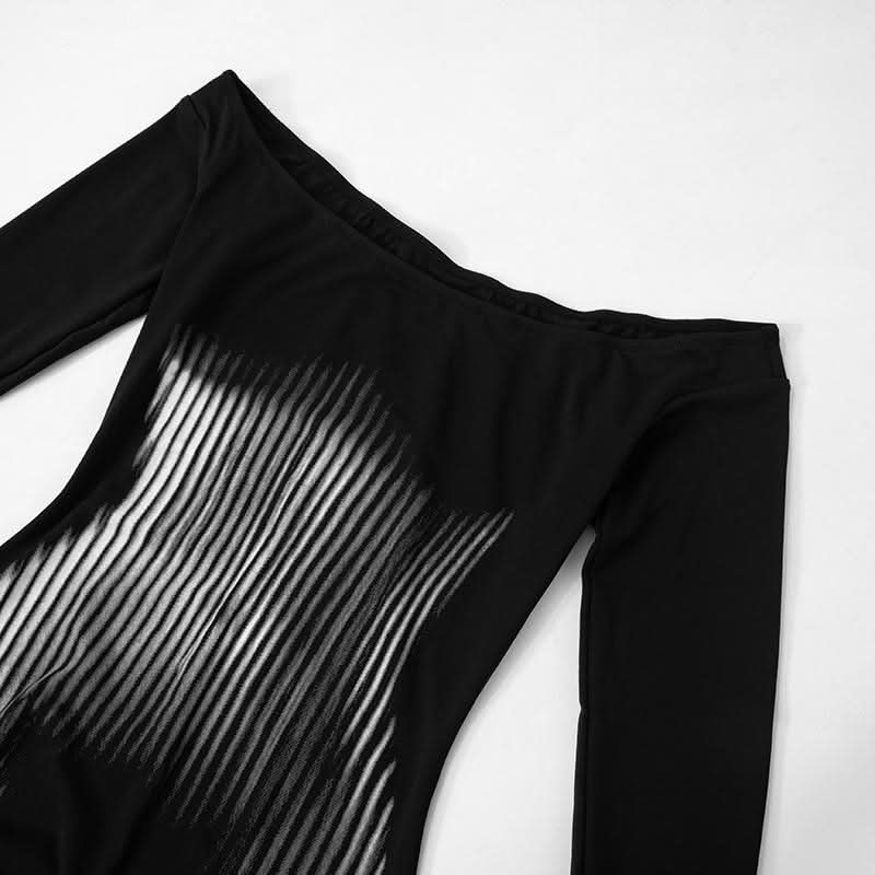 Long sleeve off shoulder print contrast maxi dress