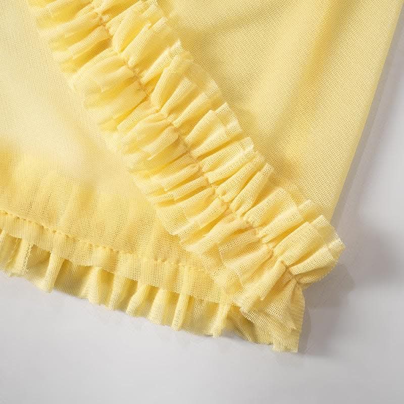 Long sleeve ruffle hollow out v neck sheer mesh cut out maxi dress-final-sale