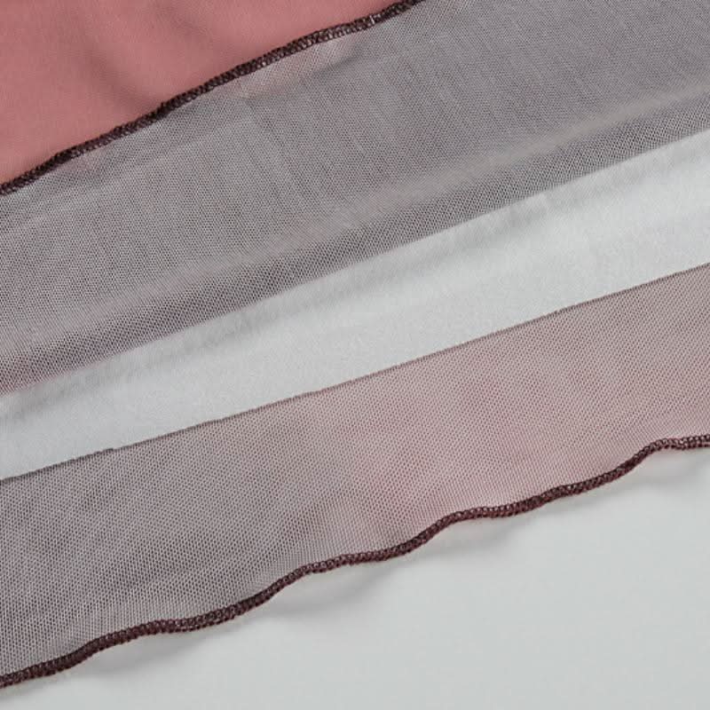 Long sleeve self tie crewneck sheer mesh print mini dress