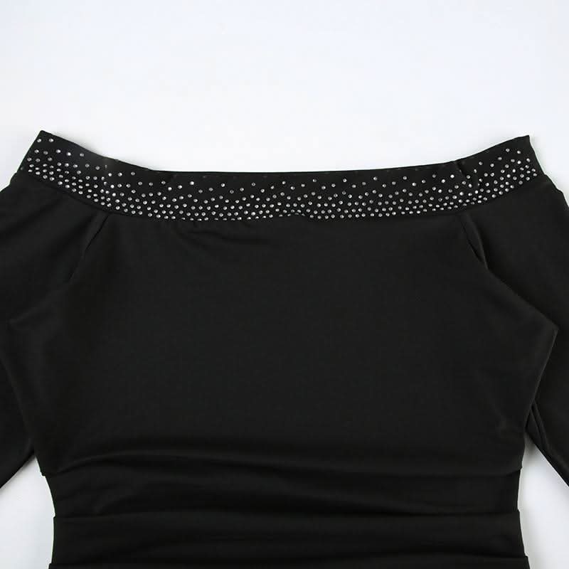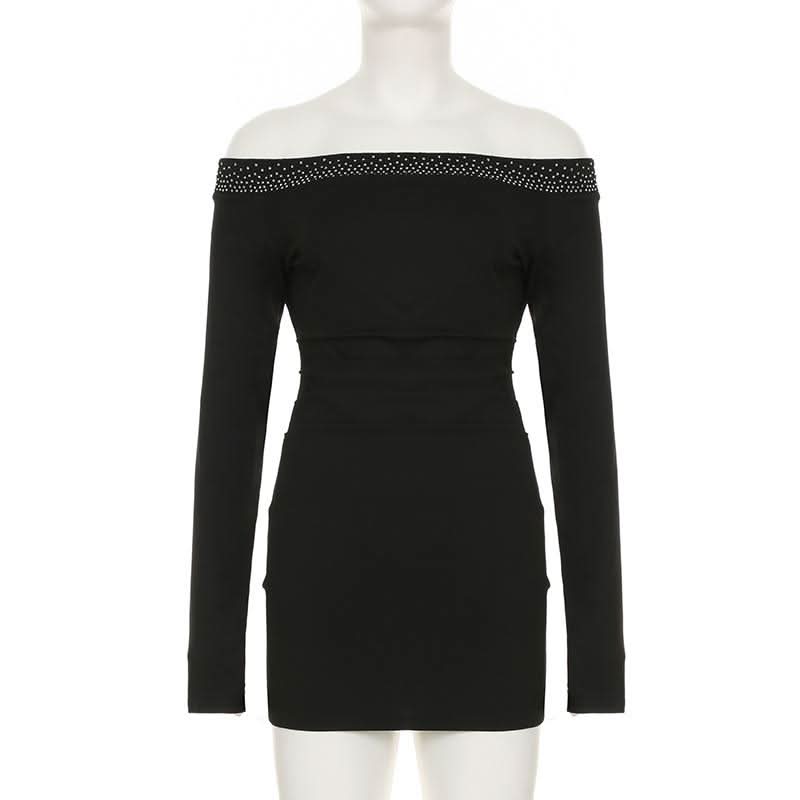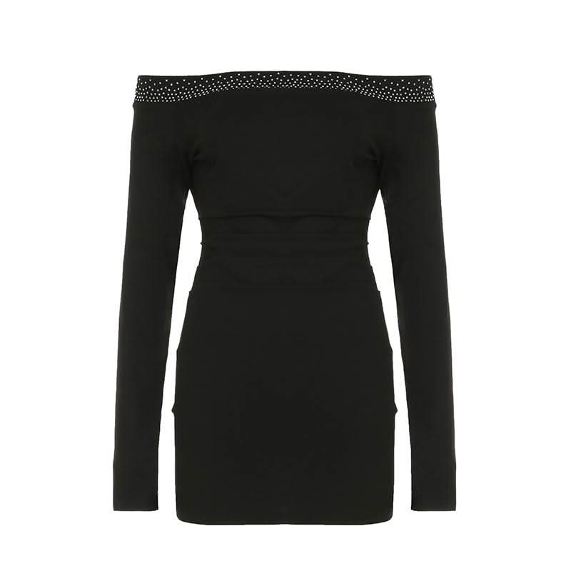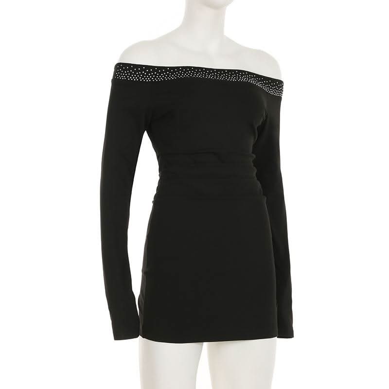Off shoulder long sleeve beaded ruched mini dress