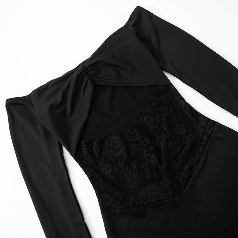 Off shoulder long sleeve hollow out lace cut out mini dress
