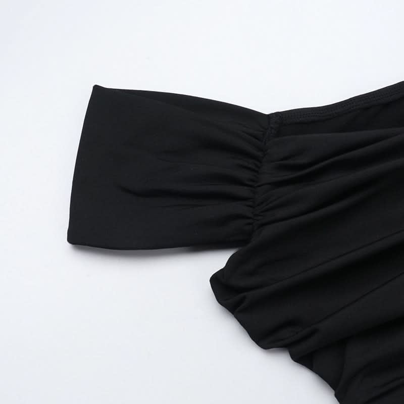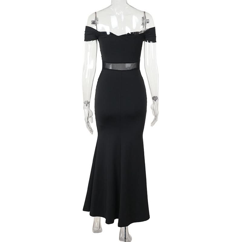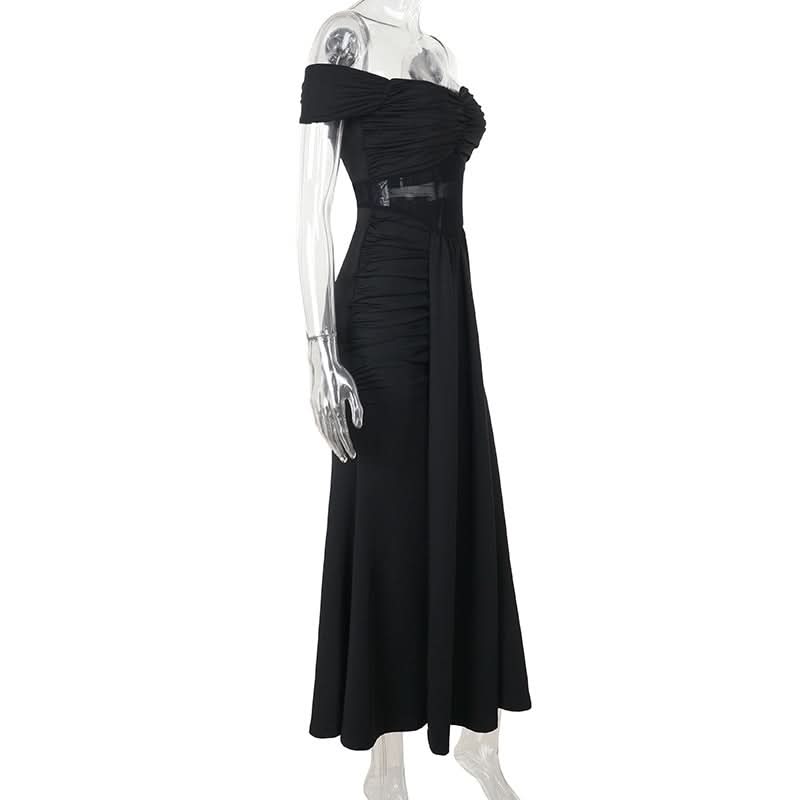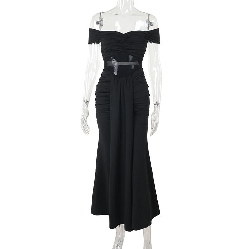 Off shoulder mesh patchwork ruched maxi dress