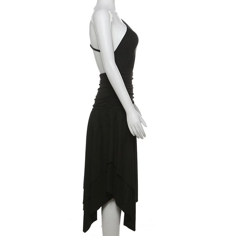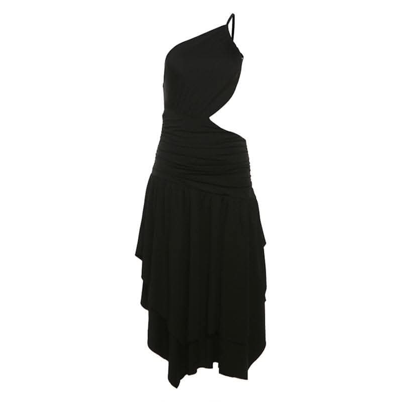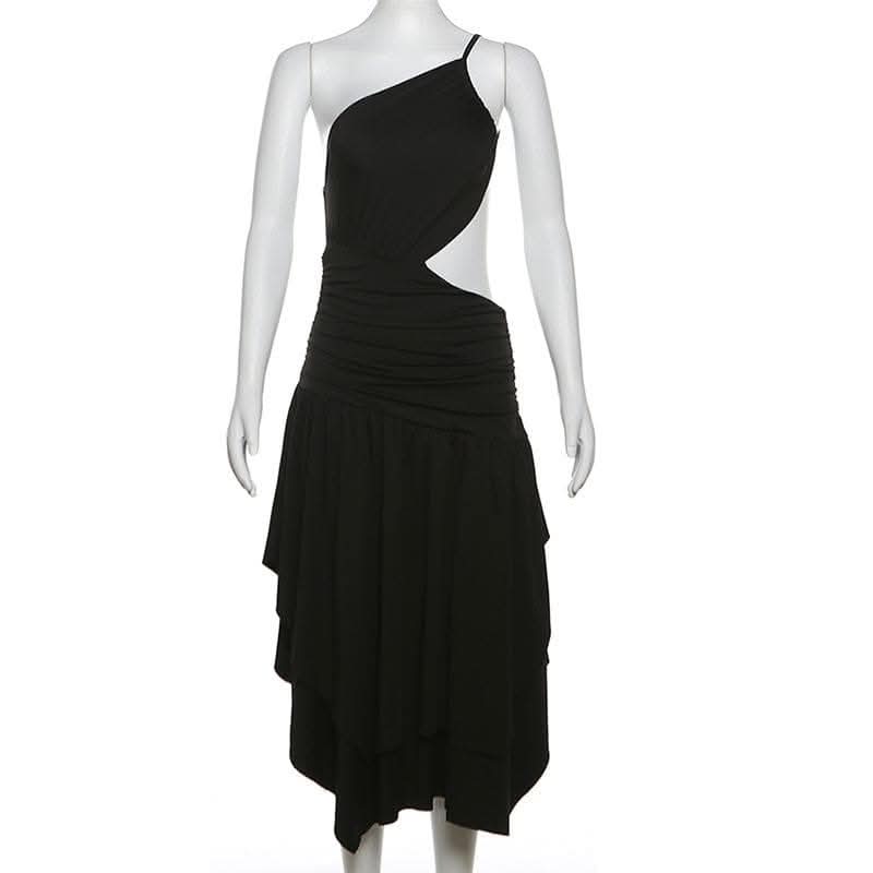 One shoulder hollow out ruched ruffle cut out midi dress-final-sale