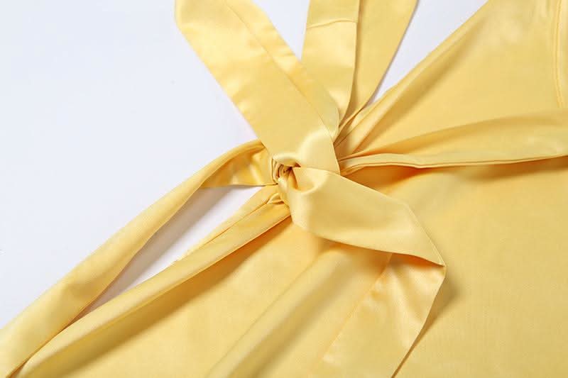 One shoulder satin backless knotted maxi dress