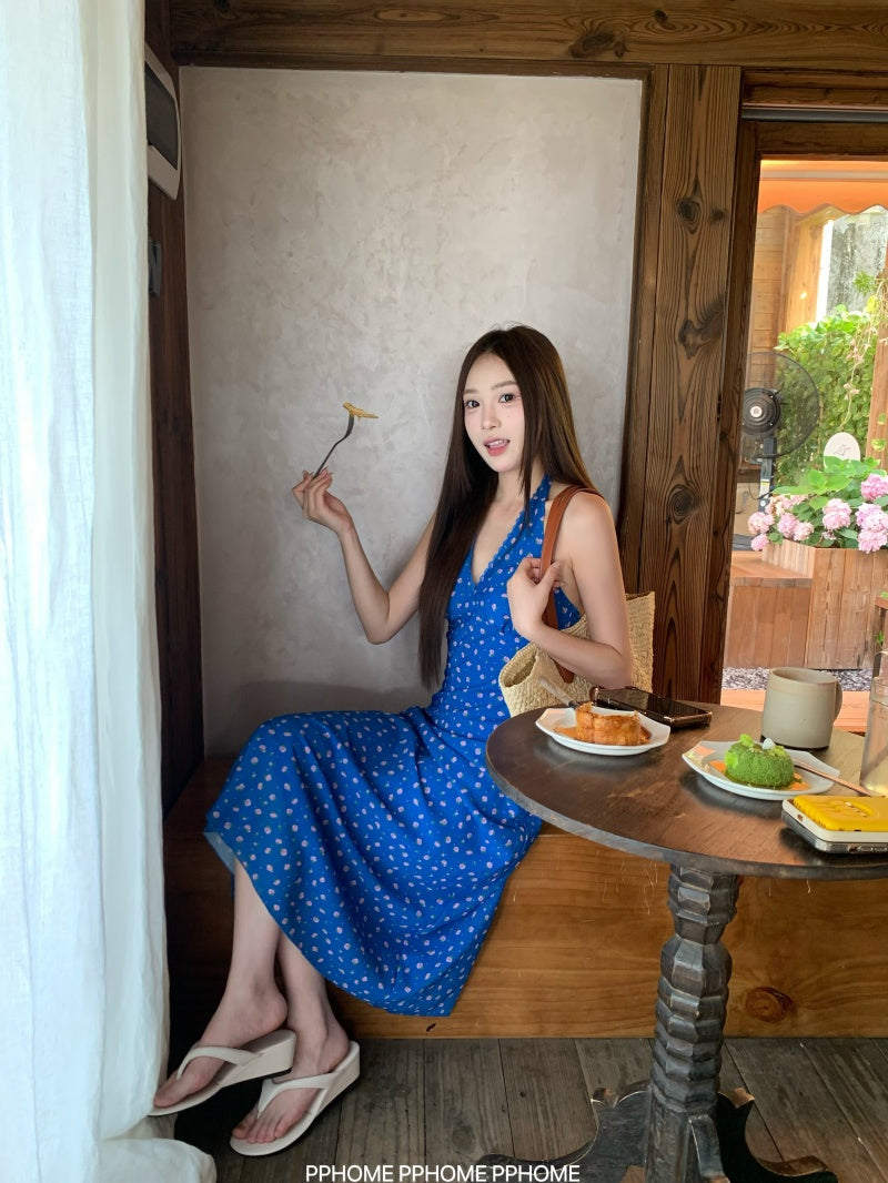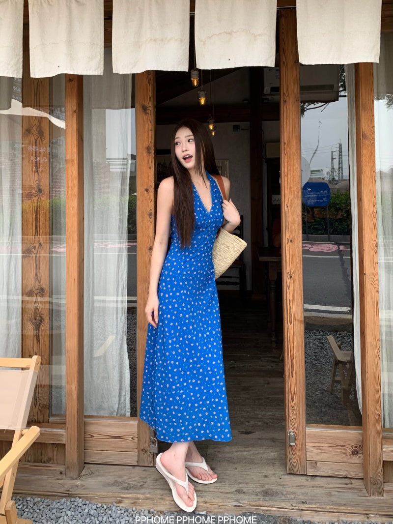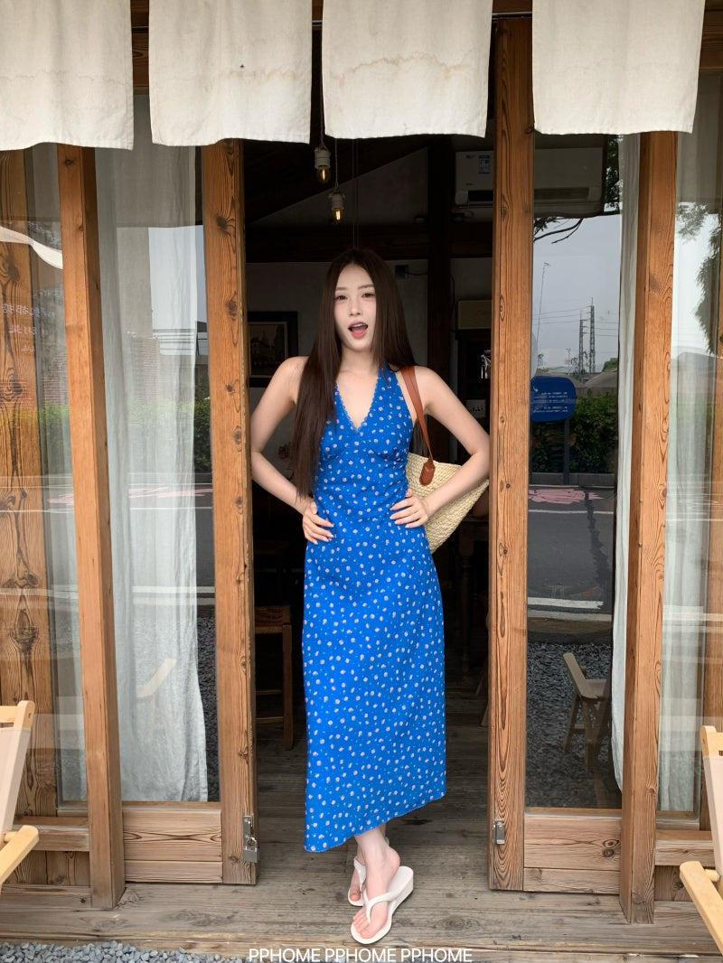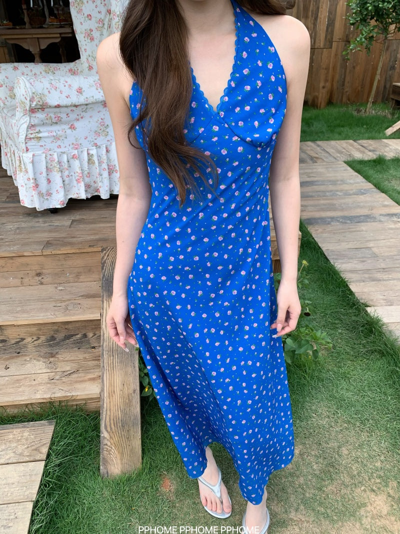 lace halter floral dress