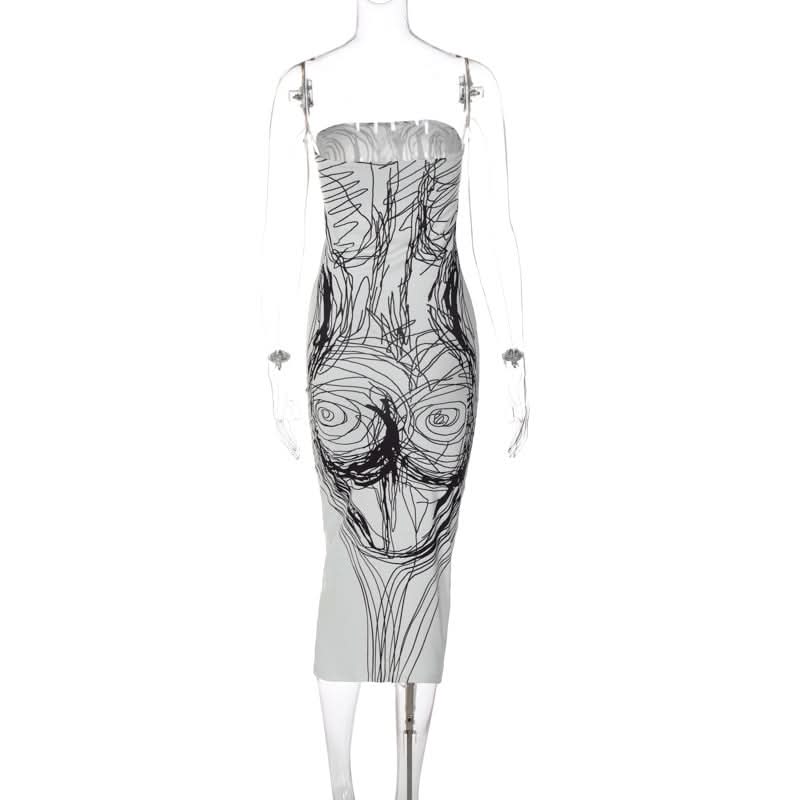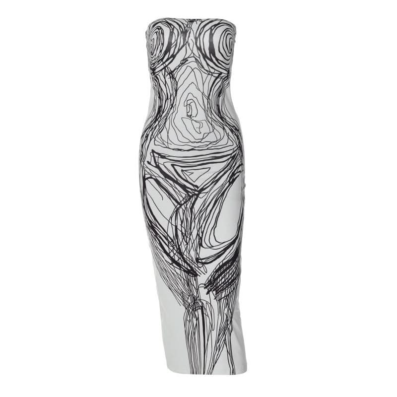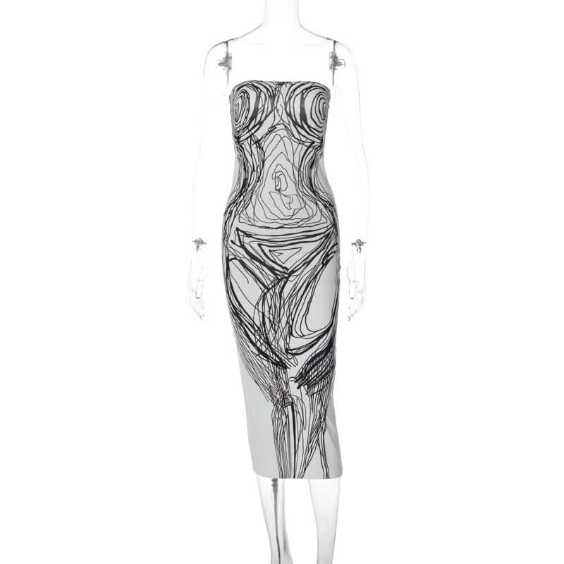 Print contrast backless tube midi dress