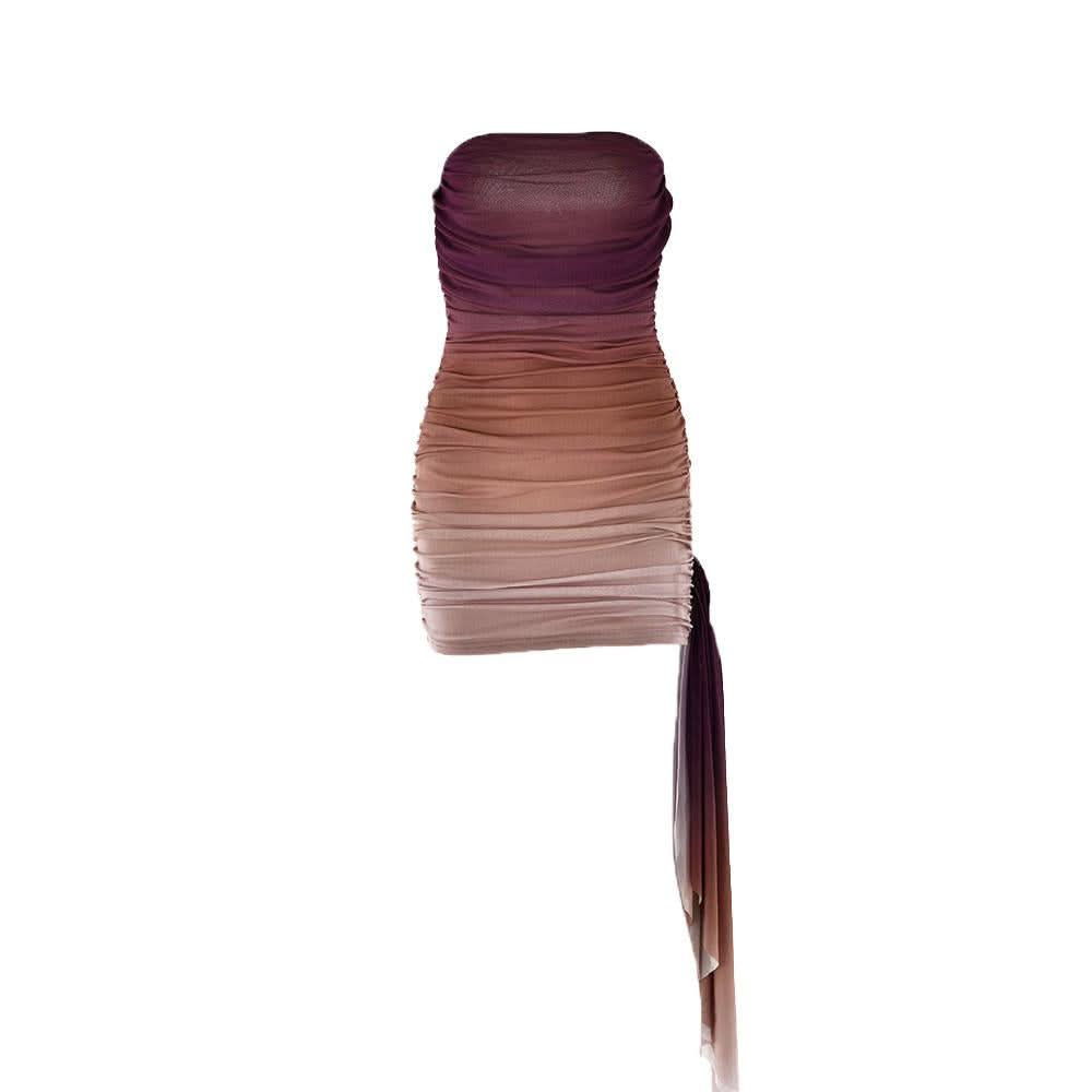 Ruched gradient mesh backless tube mini dress