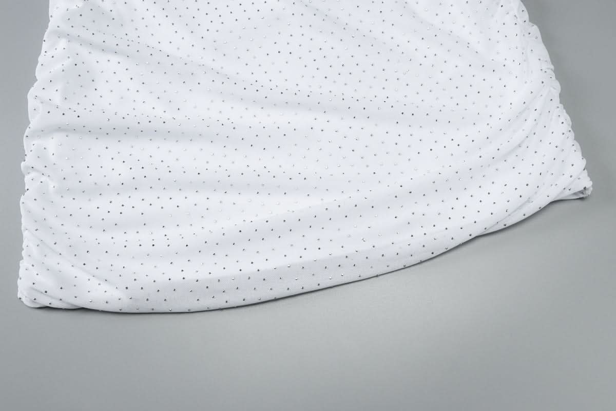 Ruched mesh beaded cross front mini dress