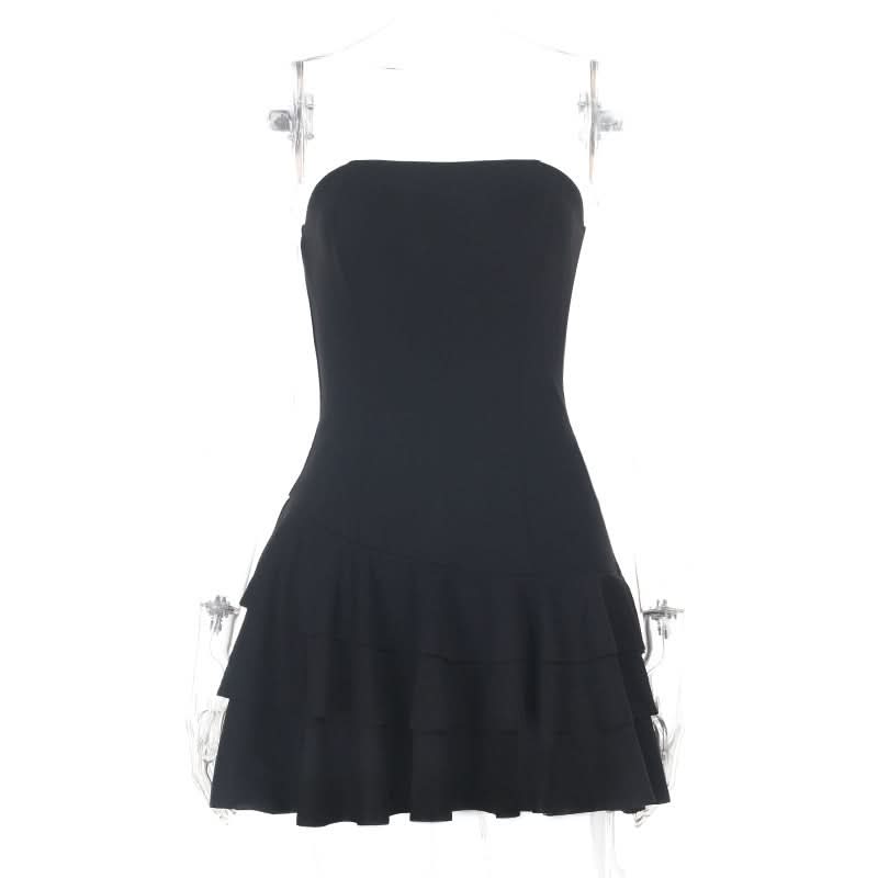 Ruffle backless solid zip-up tube mini dress