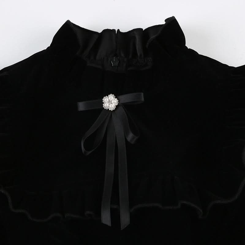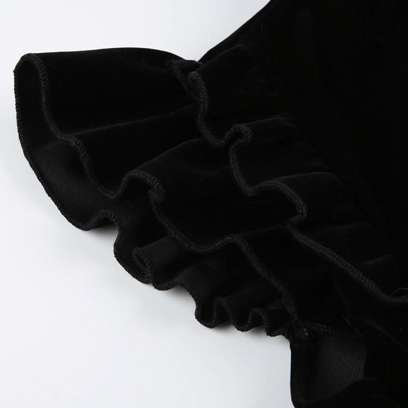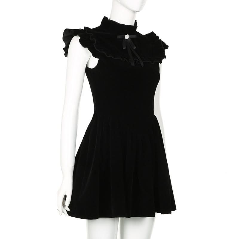 Ruffle bowknot cap sleeve zip-up velvet mini dress