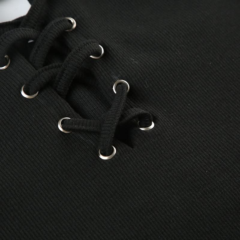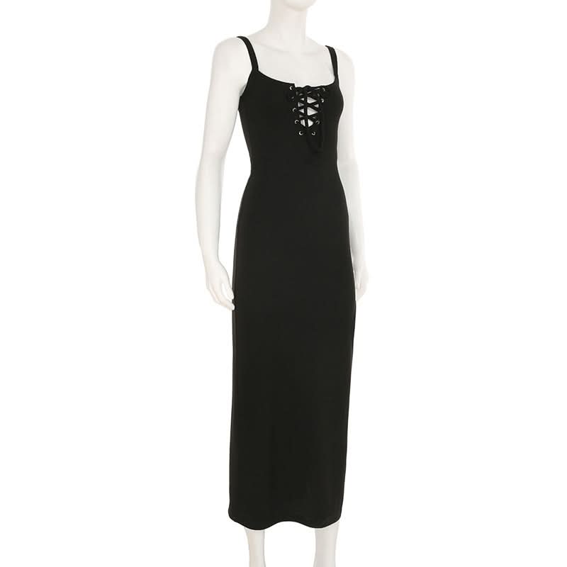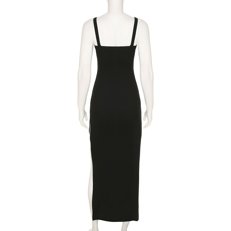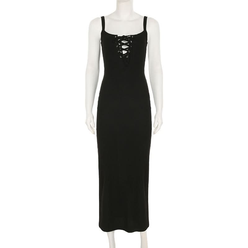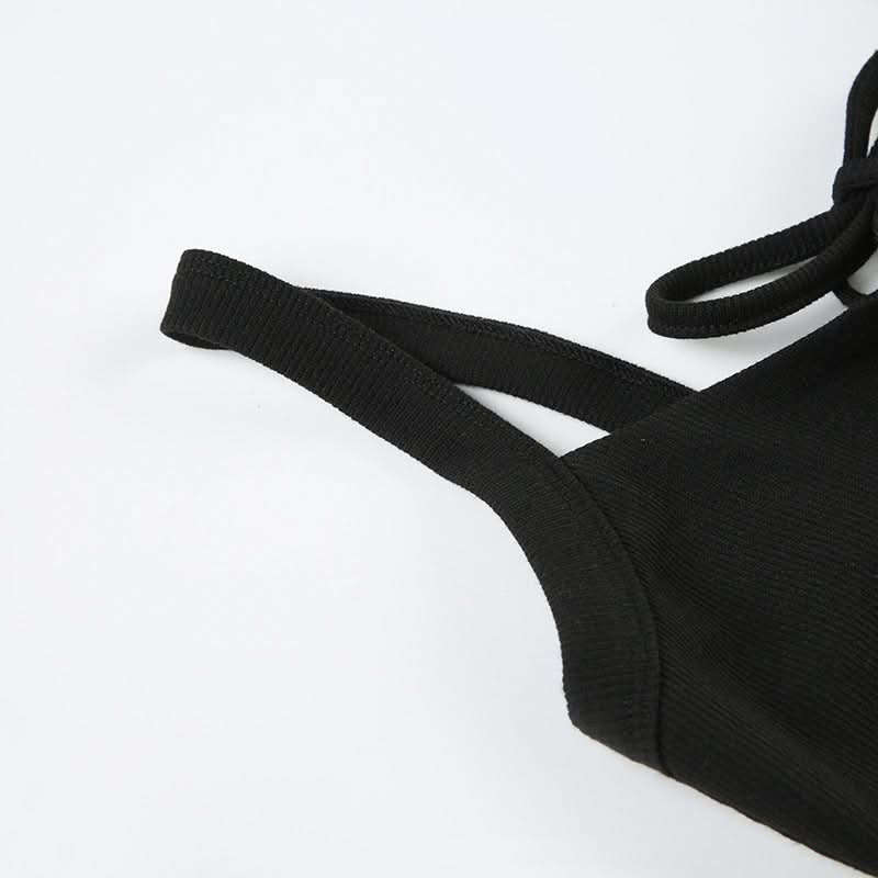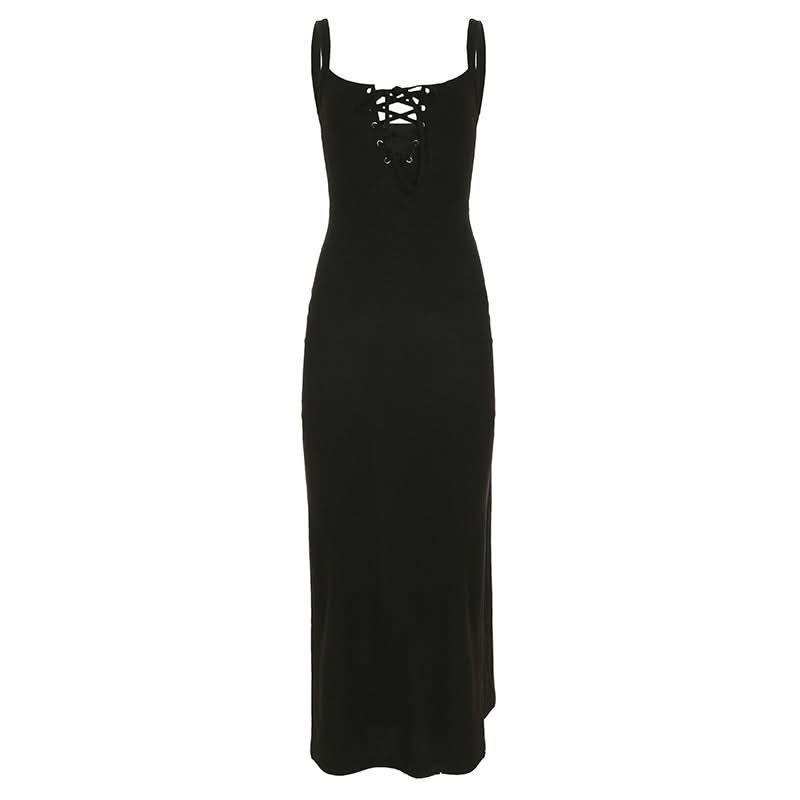 Self tie u neck hollow out ribbed slit cami cut out midi dress
