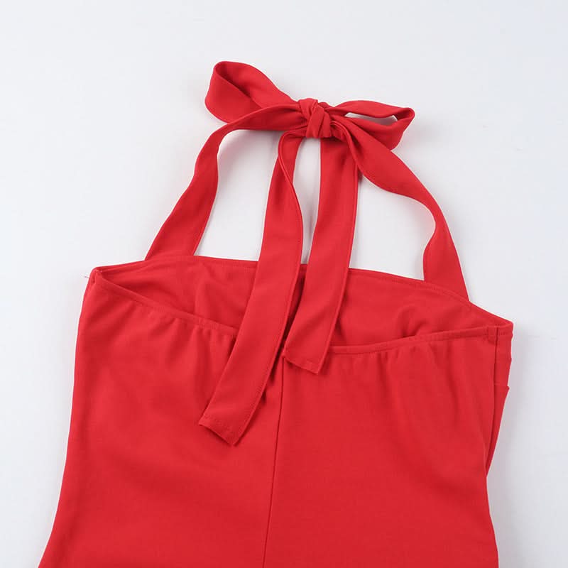 Slit flower applique halter square neck midi dress