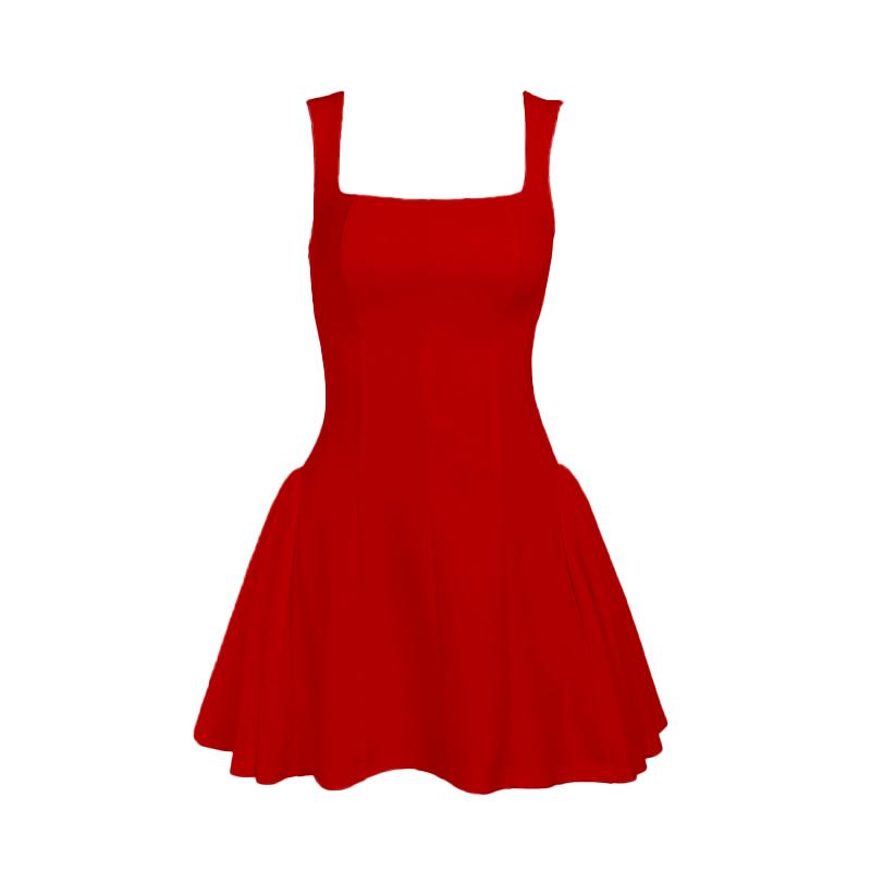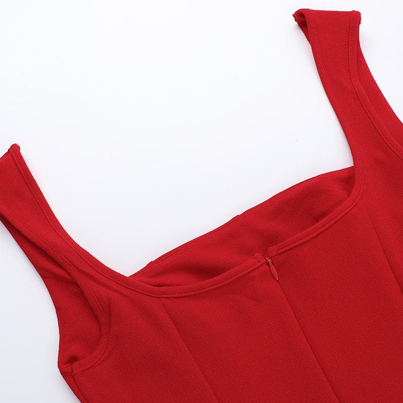 Square neck ruched stitch zip-up cami mini dress