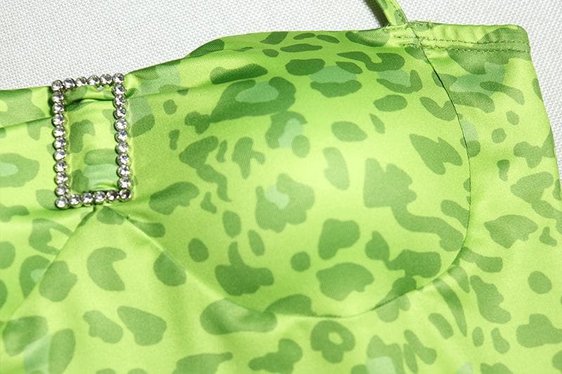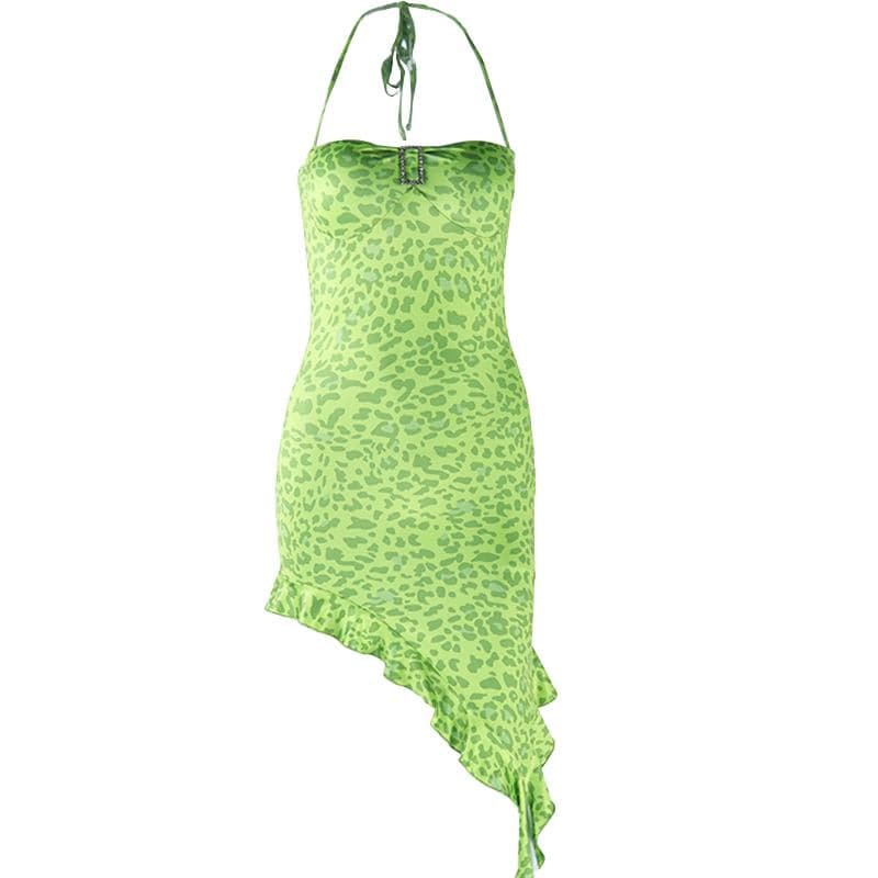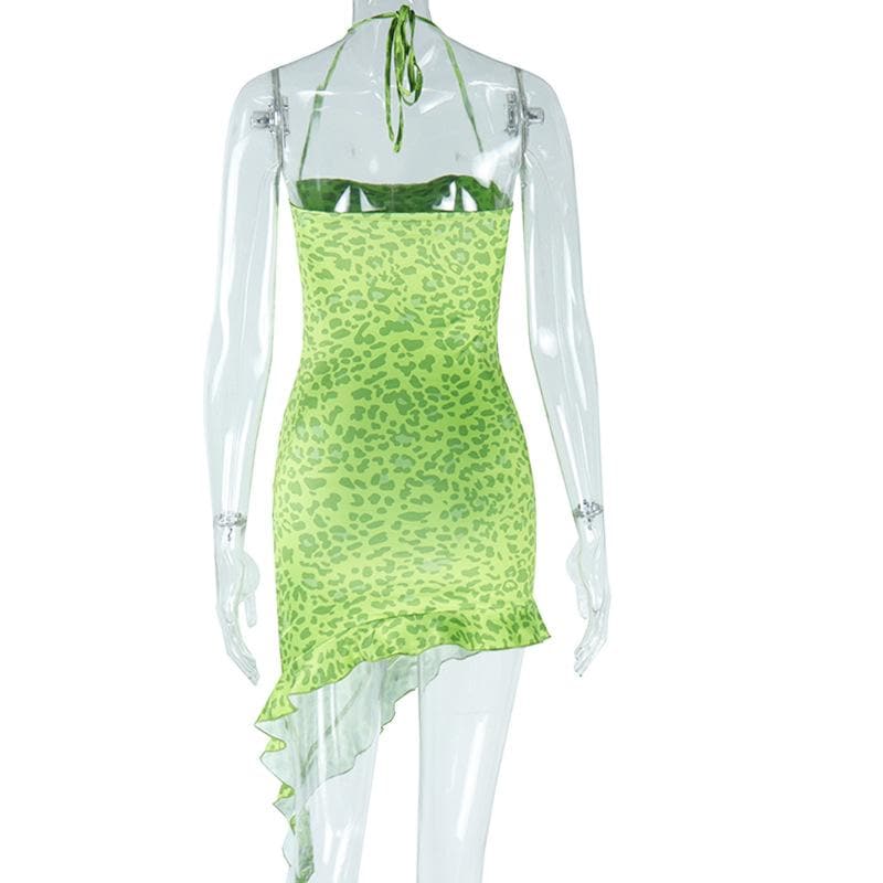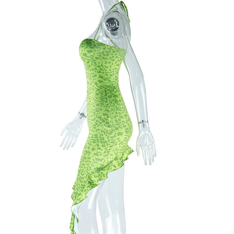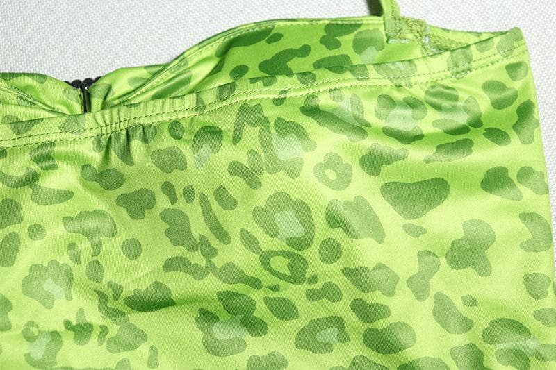 Sweetheart neck padded leopard print ruffle midi dress