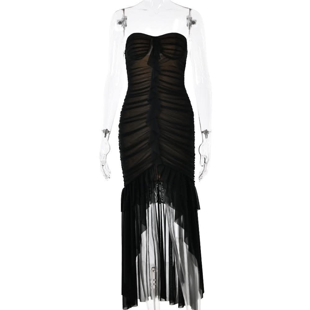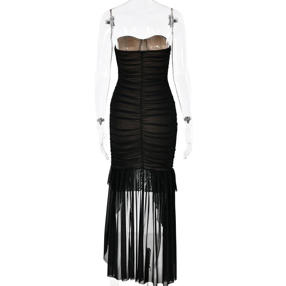Sweetheart neck ruched ruffle tube midi dress-final-sale