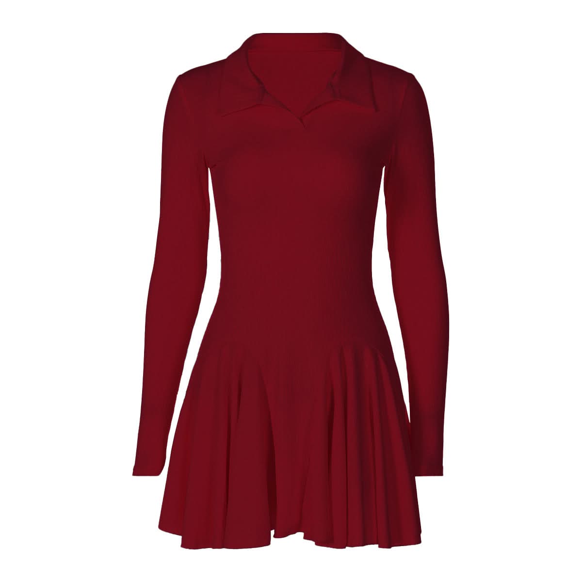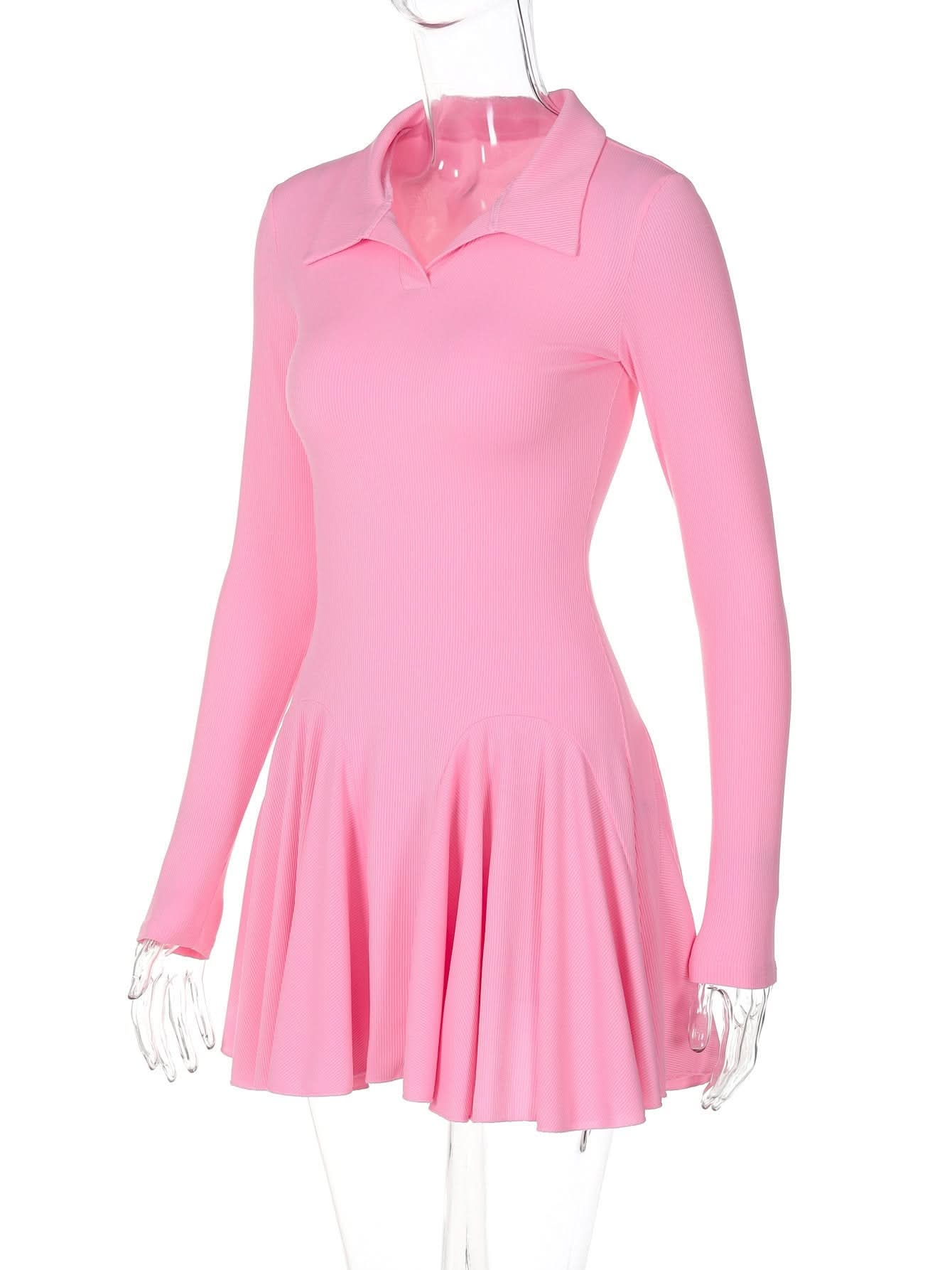 Turnover collar long sleeve solid mini dress
