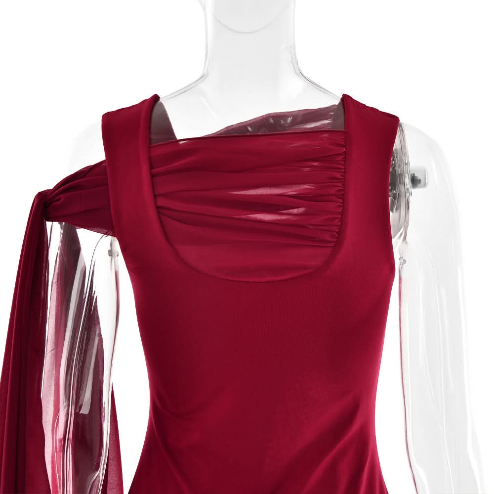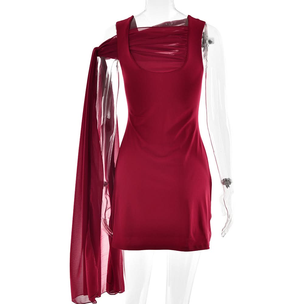 U neck knotted solid mini dress