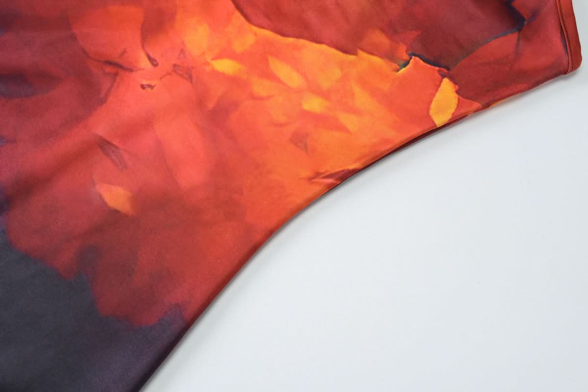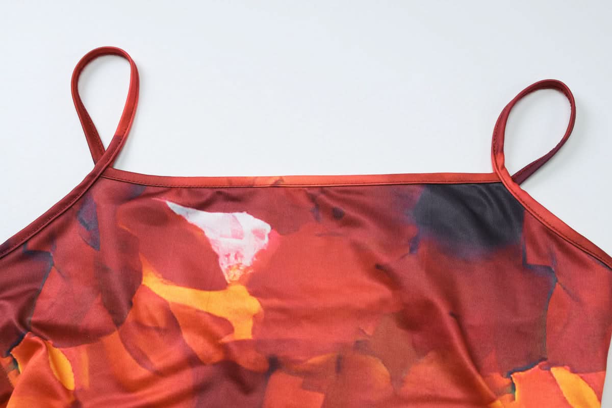 U neck print backless cami maxi dress