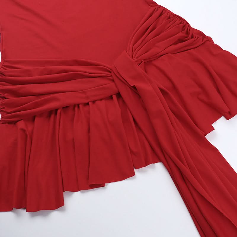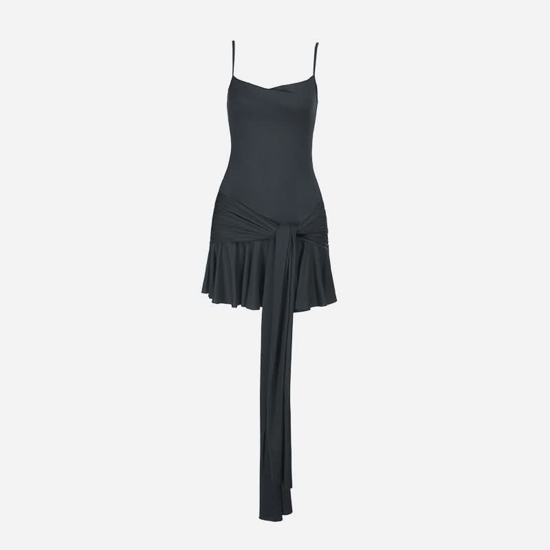 U neck solid knotted ruffle ruched cami mini dress