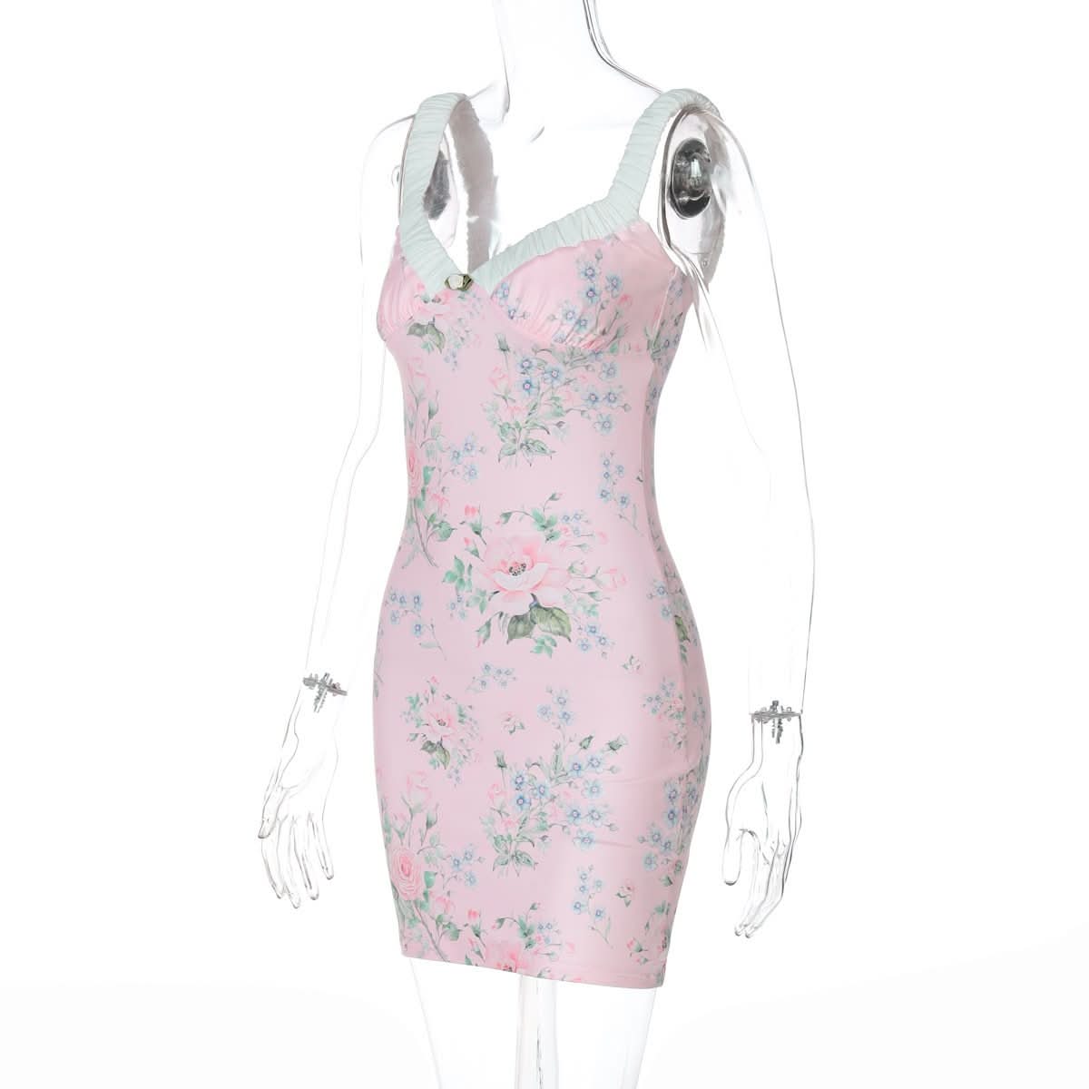 V neck flower print cami mini dress