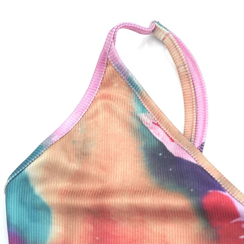 V neck ribbed print backless cami maxi dress