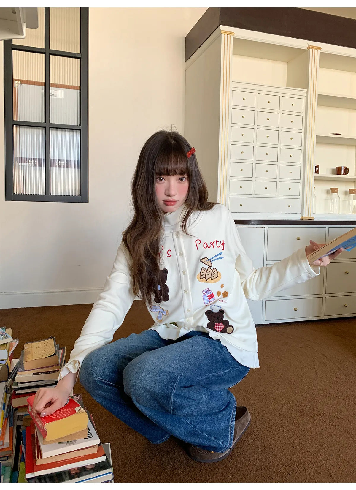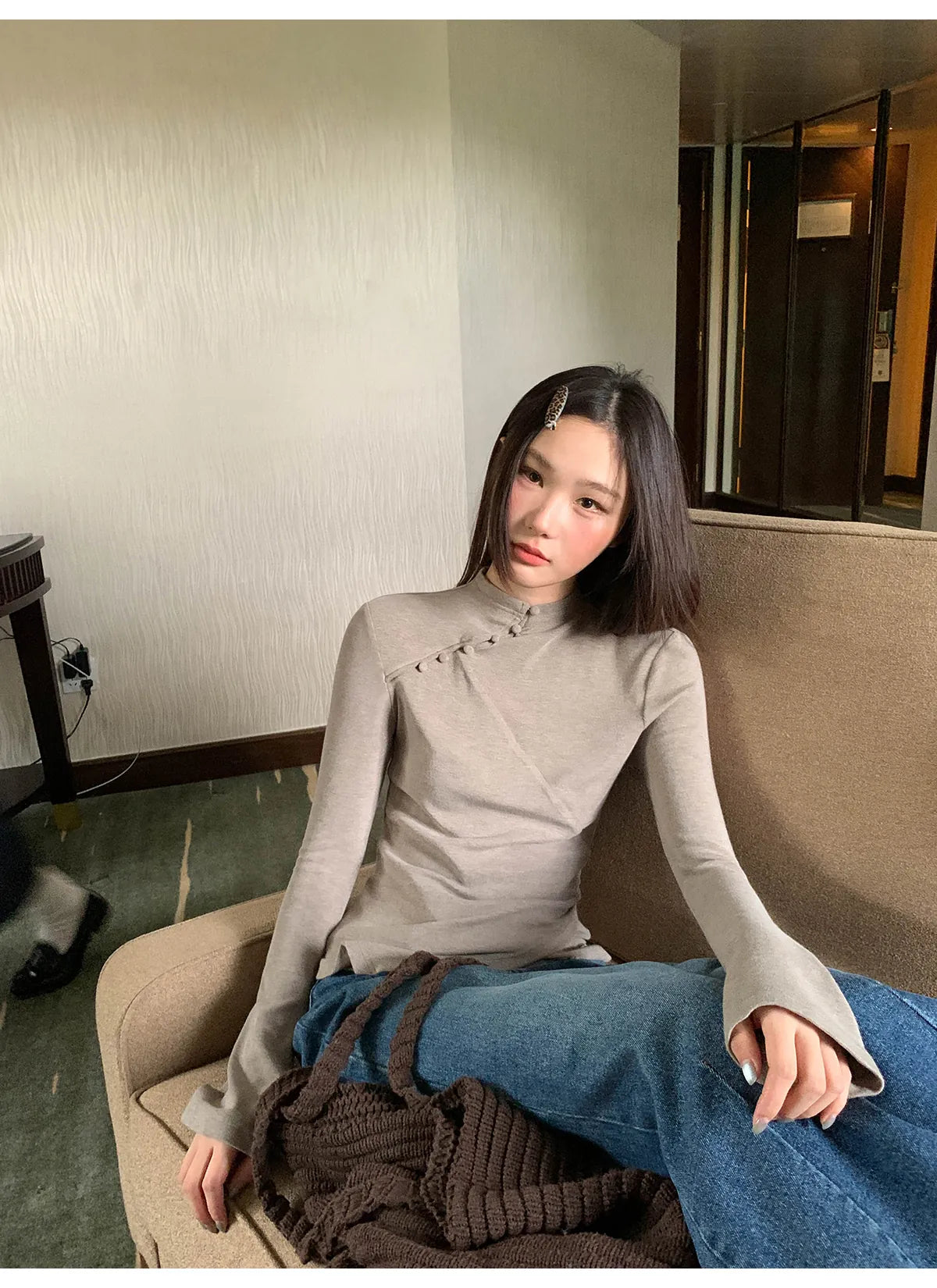 washed split jeans