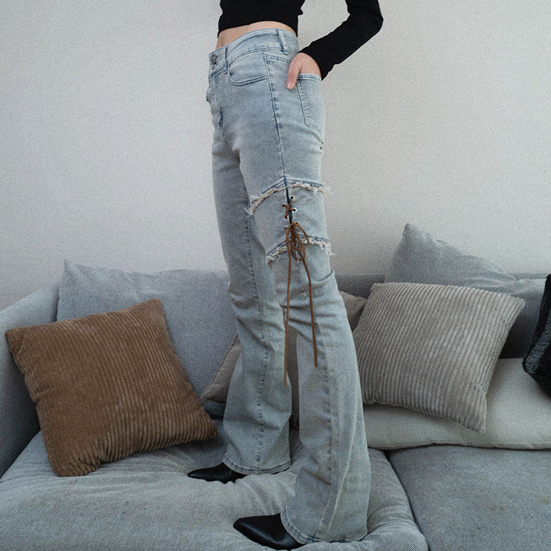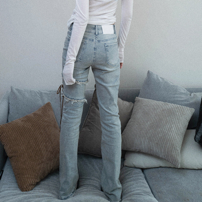 Strap Slim-fit Micro-torn High Waist jeans