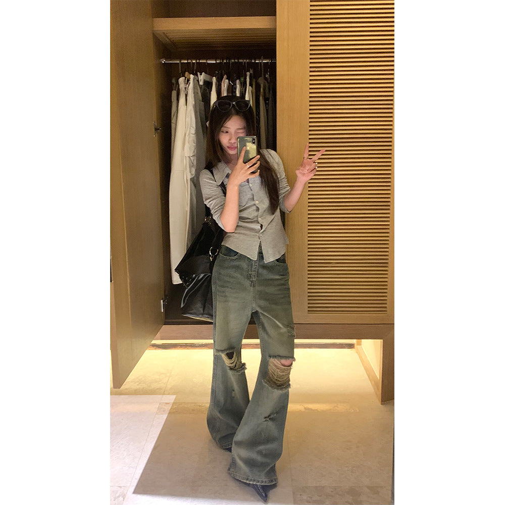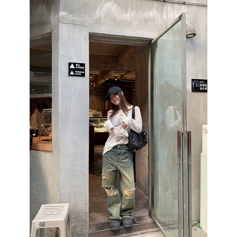 ripped straight jeans