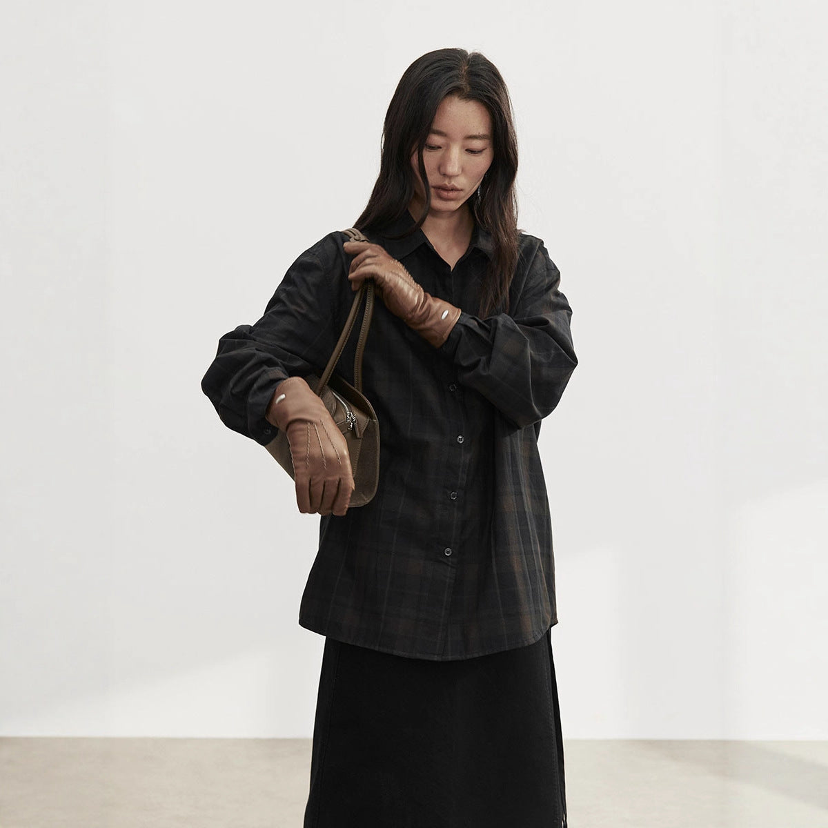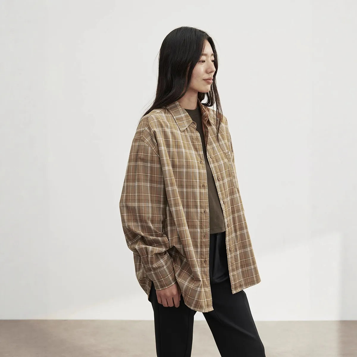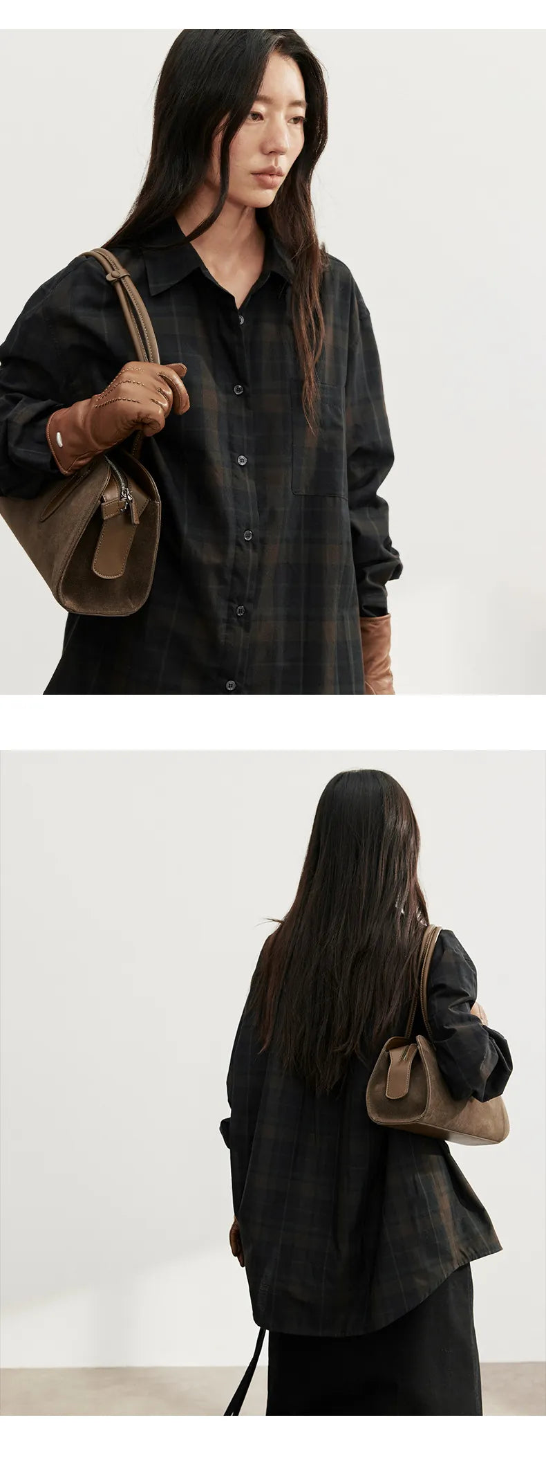 —orange plaid, black coffee plaid, khaki plaid