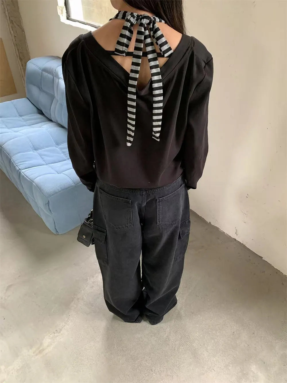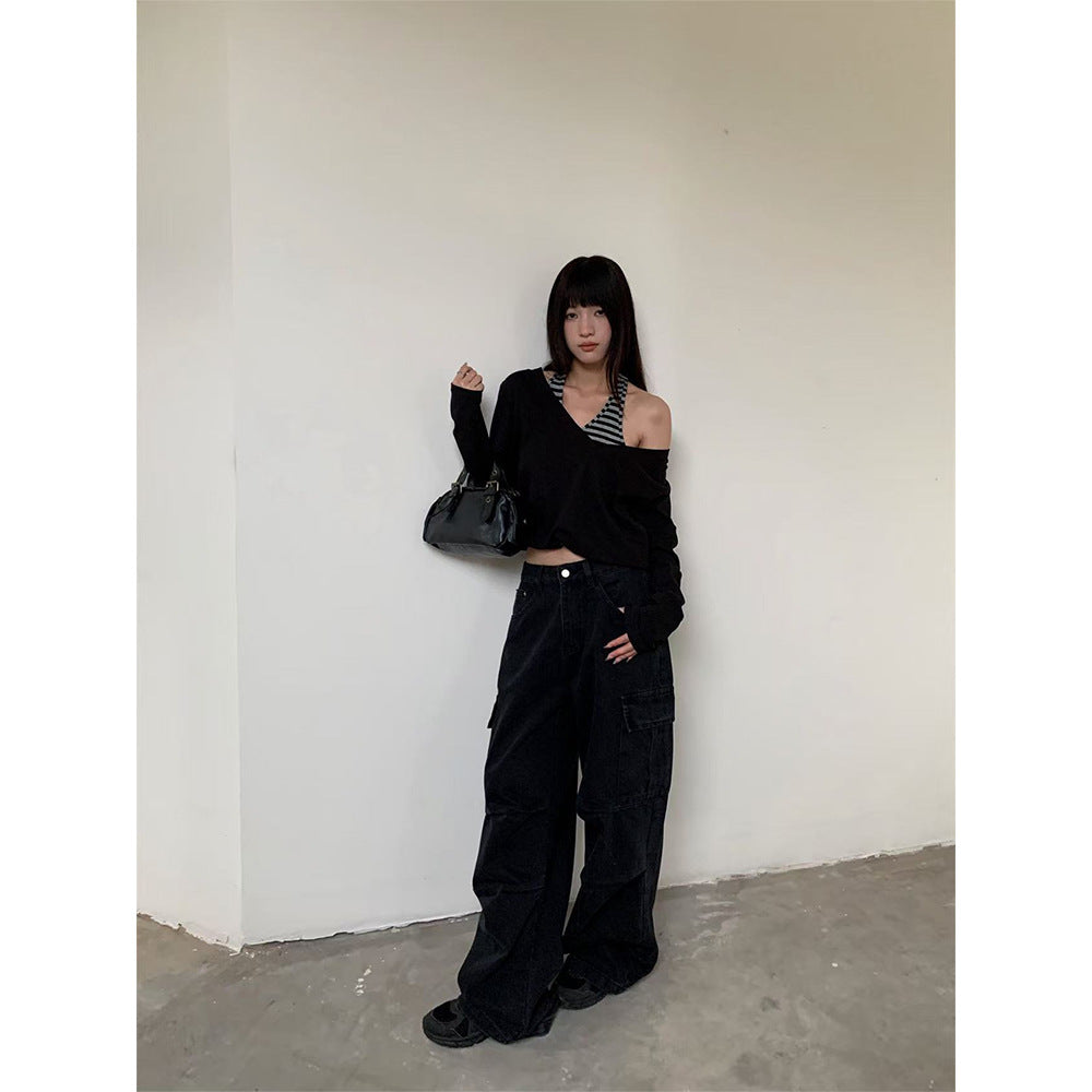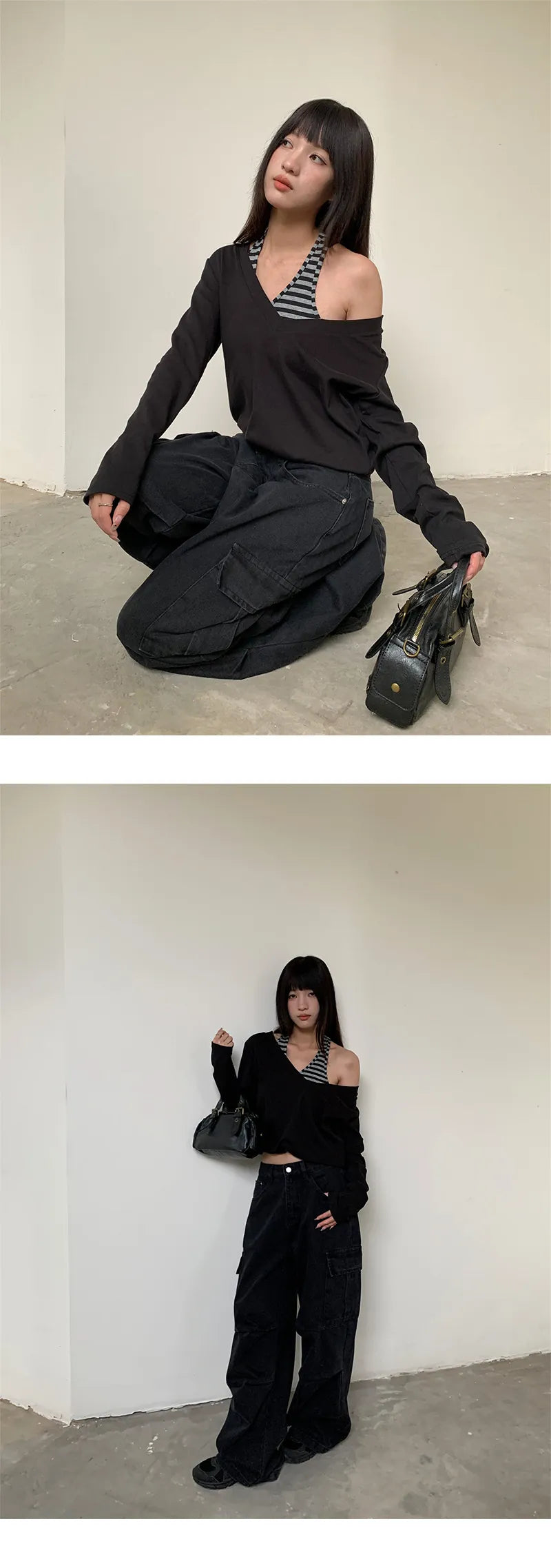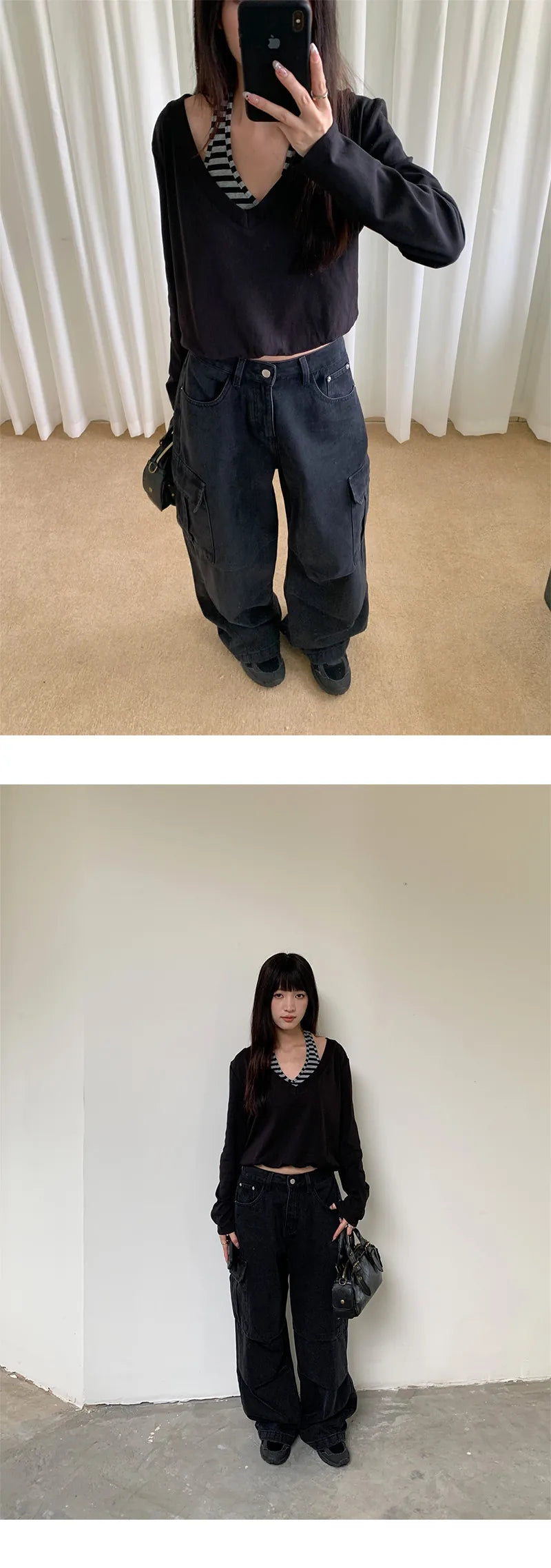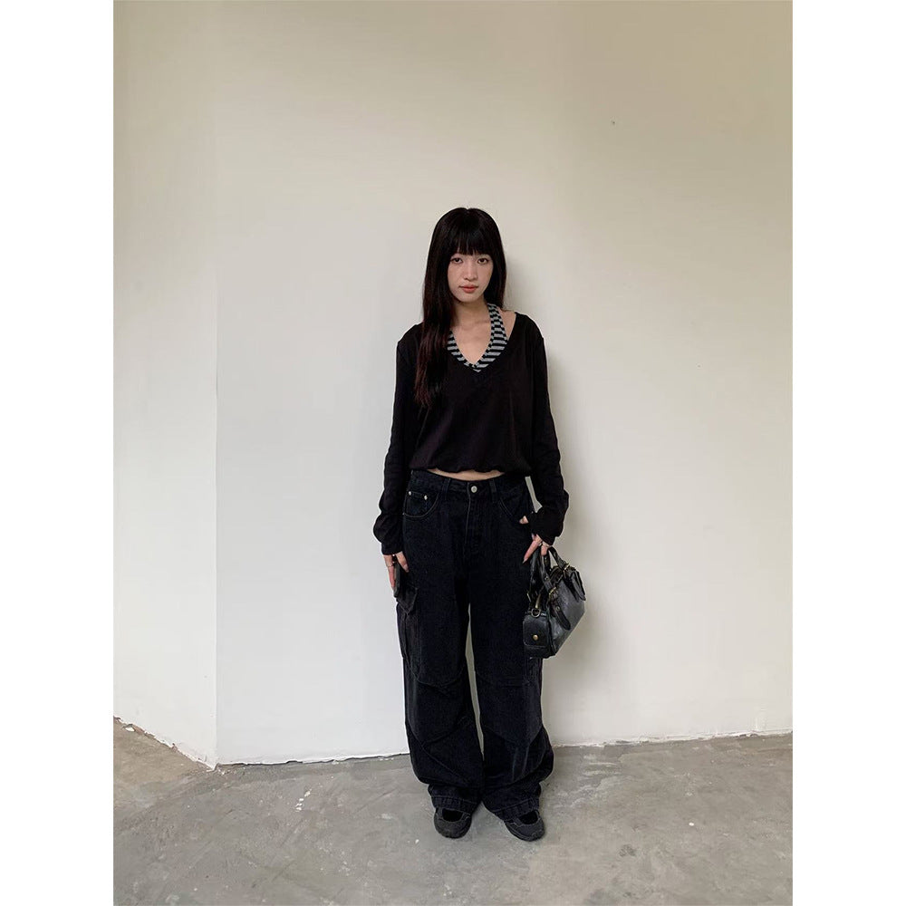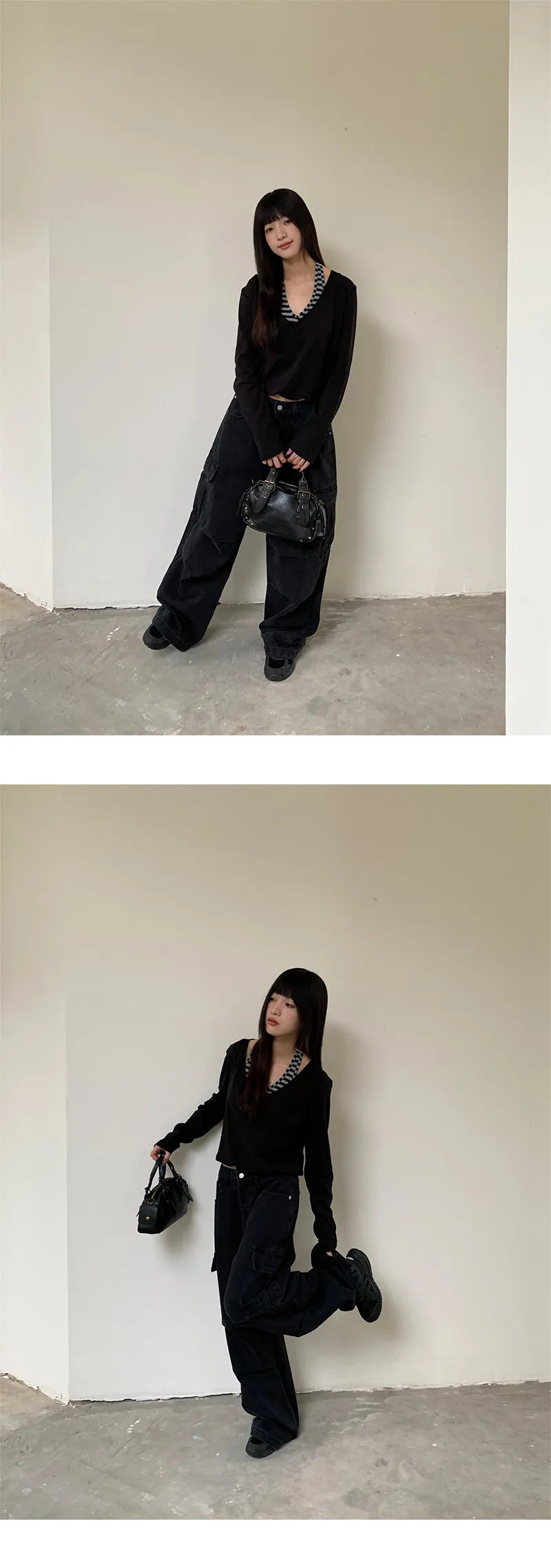 —V collar, Leisure, Two fakes, Contrast color, Splicing