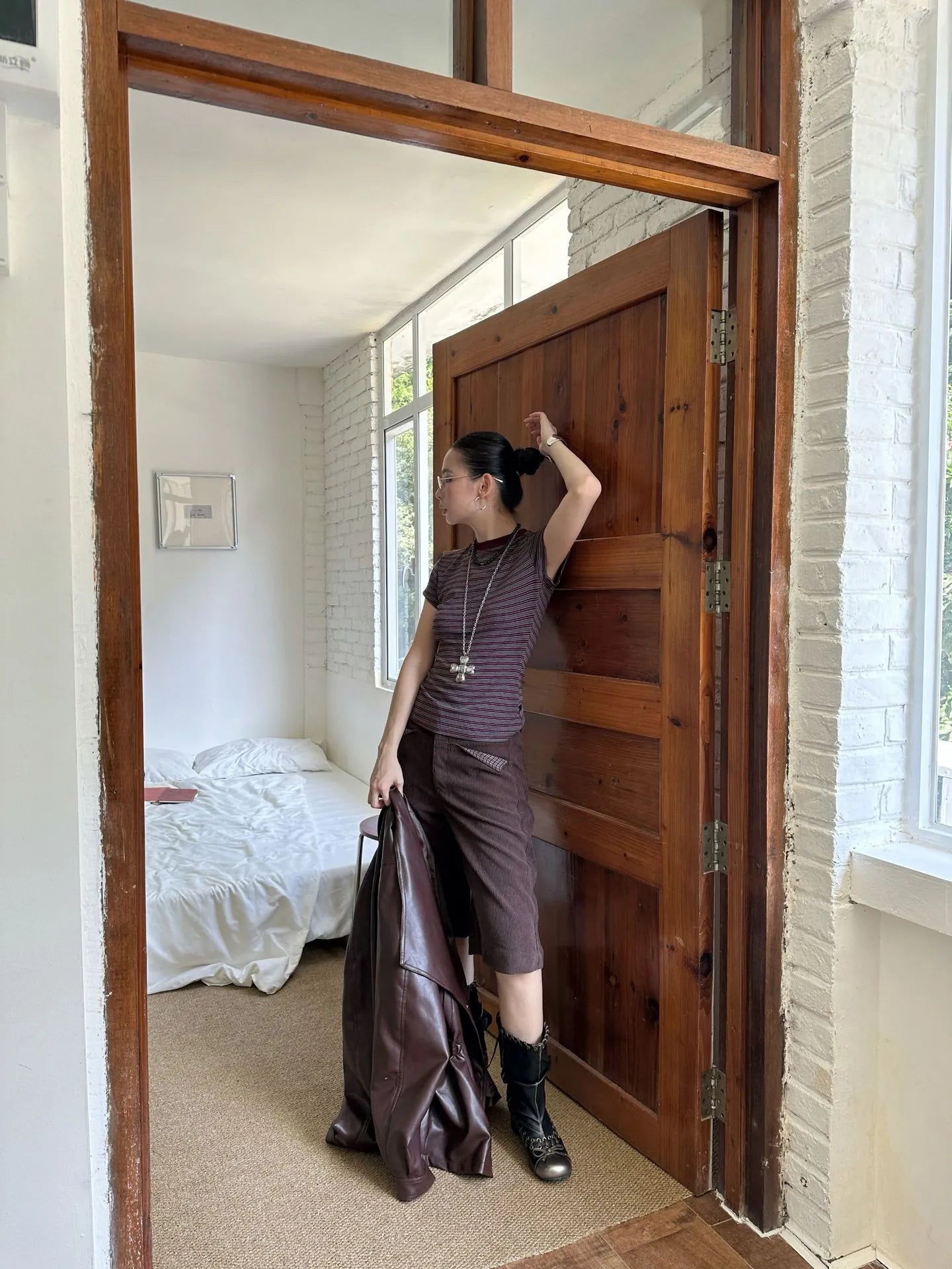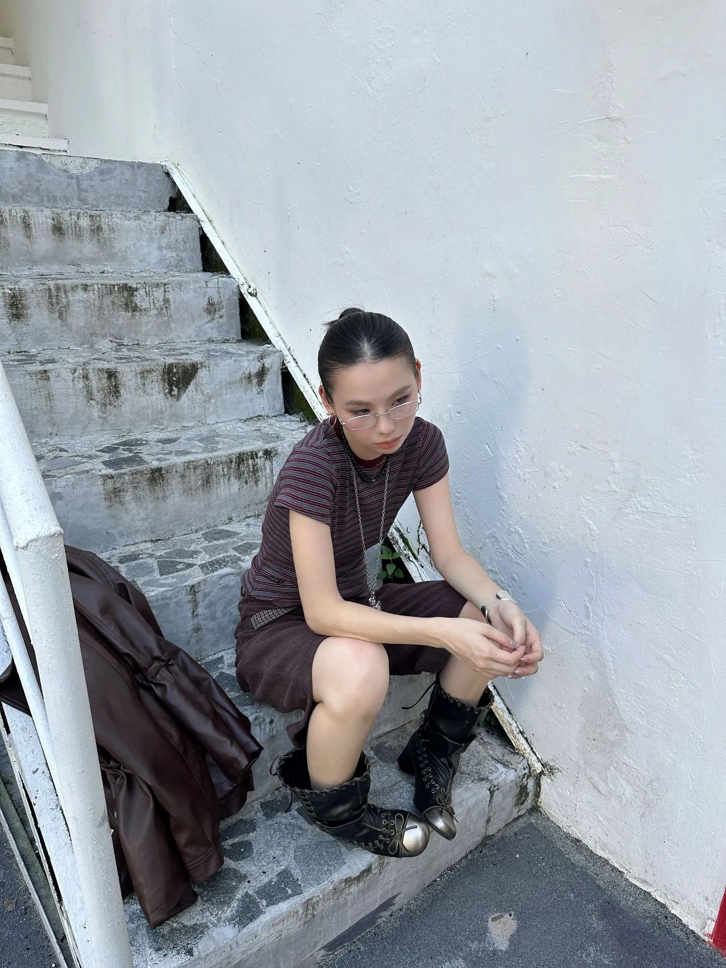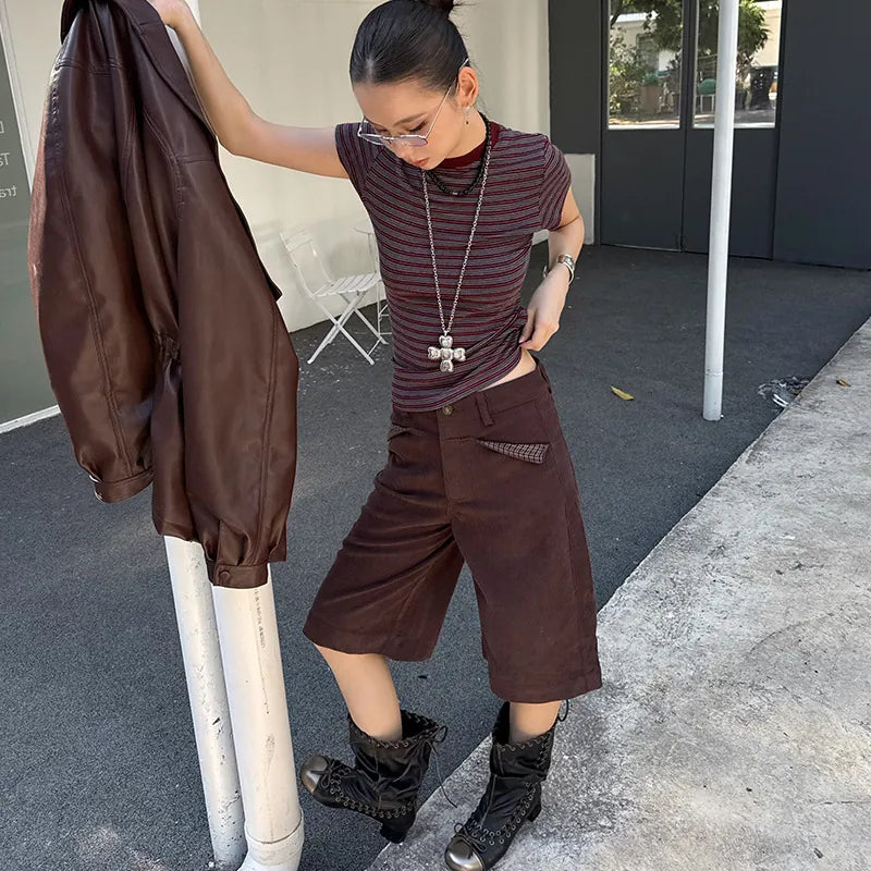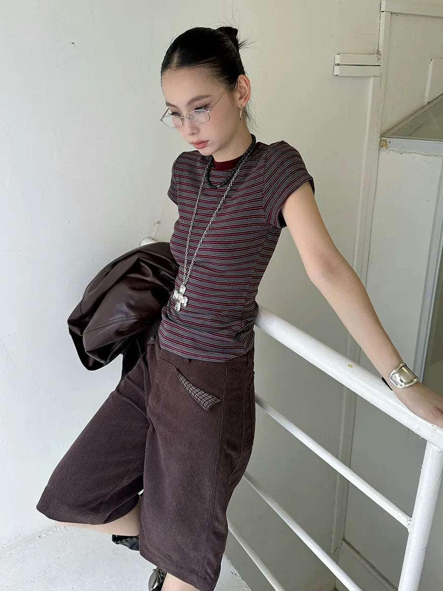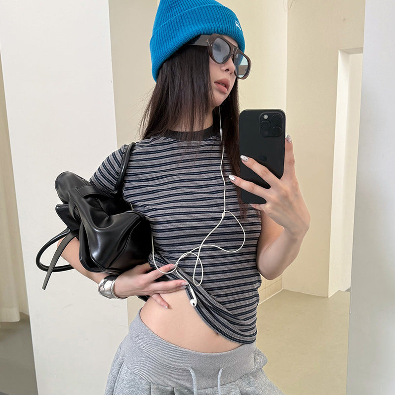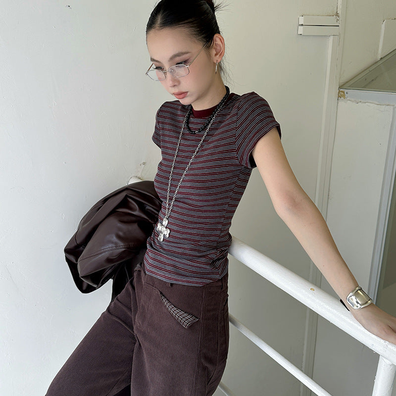 • —Round collar, stripe, Leisure, All-match, Cultivate yourself, Contrast color, Sanding, creativity