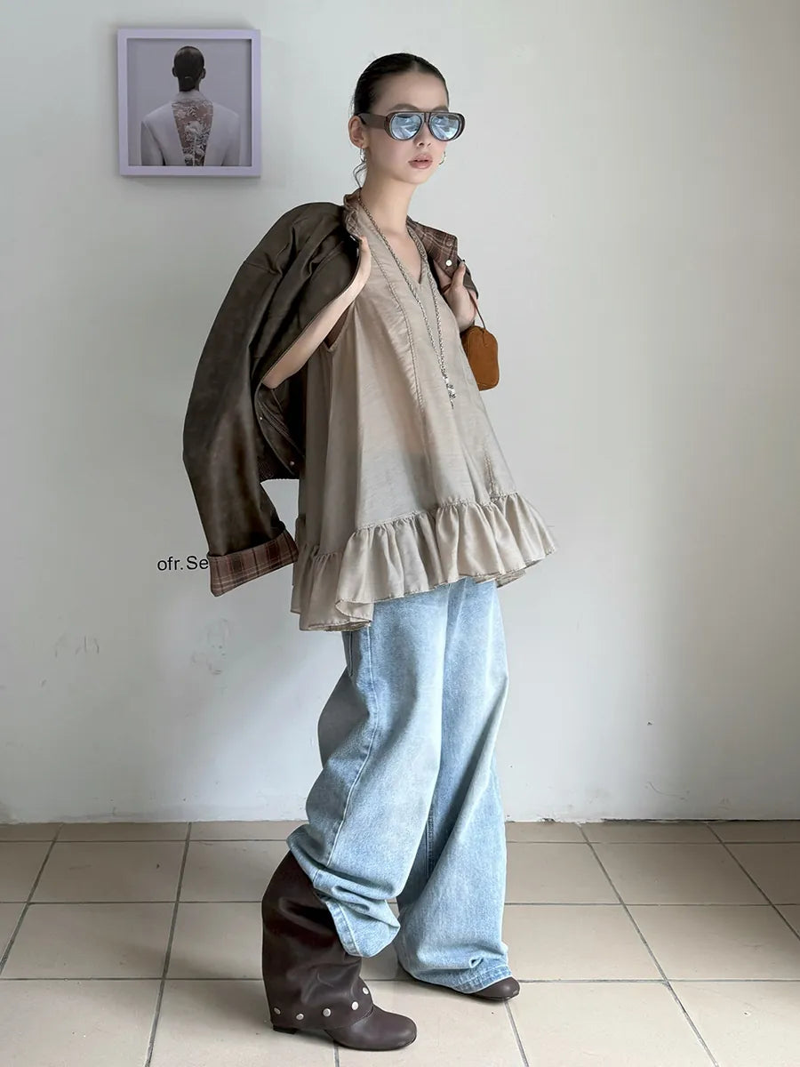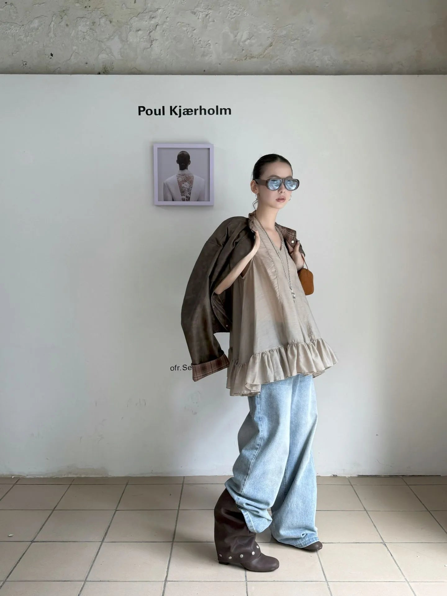—Lace, Solid color, Ruffle edge, Beside the ear, slit, Draw rope, Off-shoulder, Ice cream color