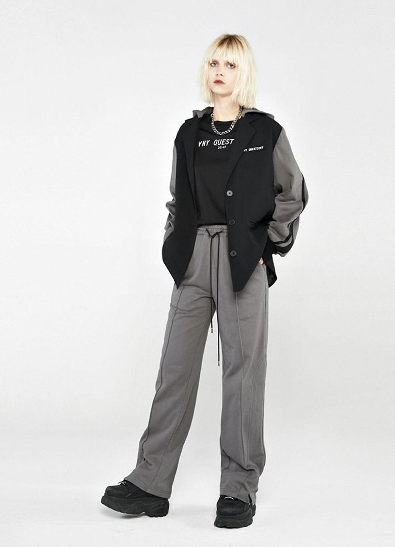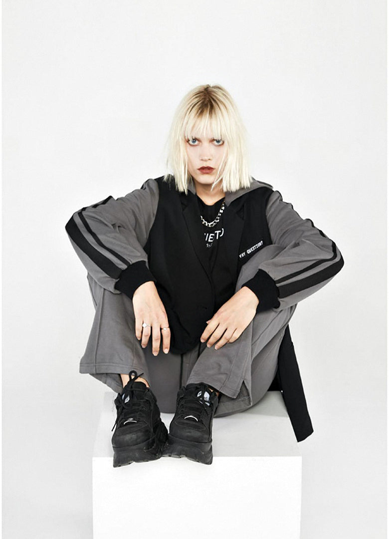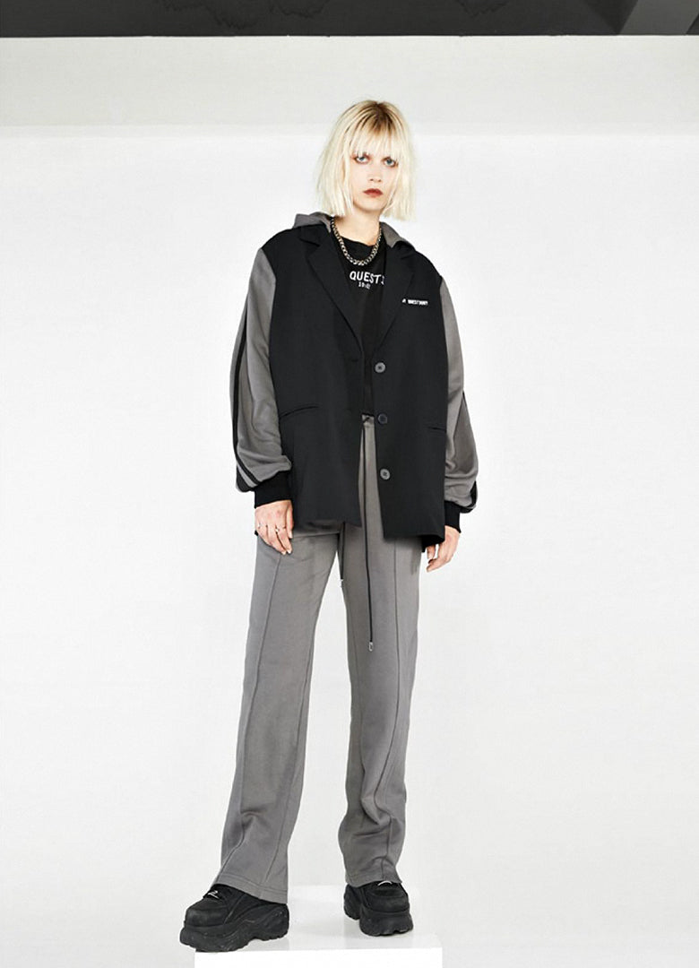 Unique splicing casual style ~ black selected quality suit fabric and gray sweatshirt fabric collide