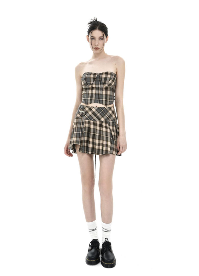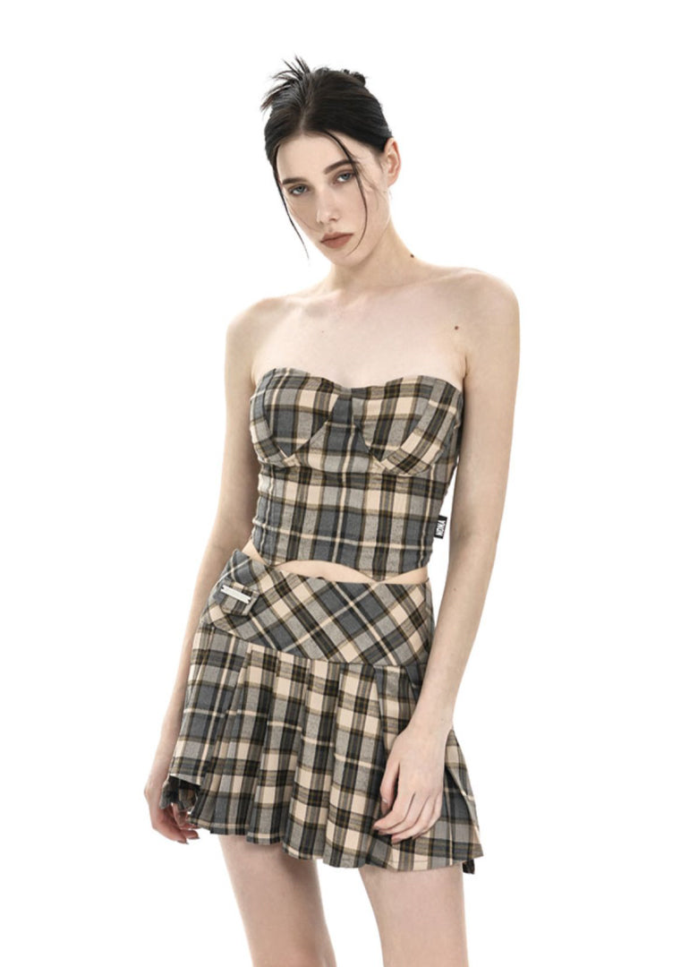[AnyQ] Checkered fishbone short tube top vest