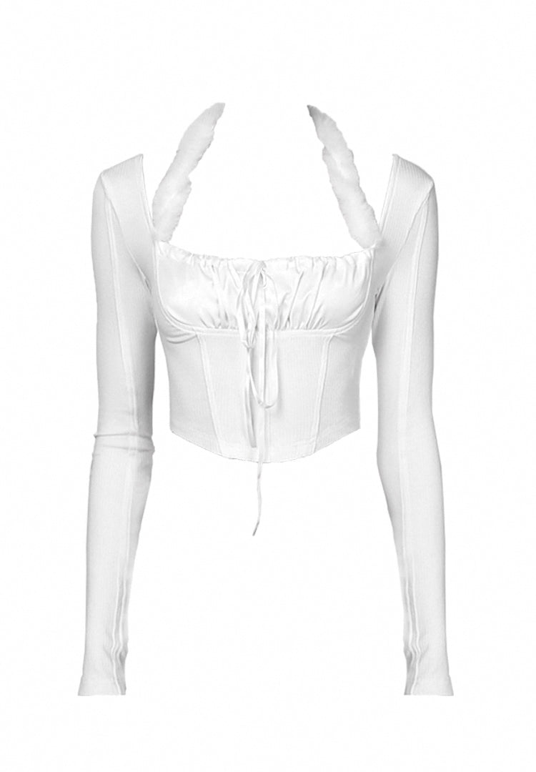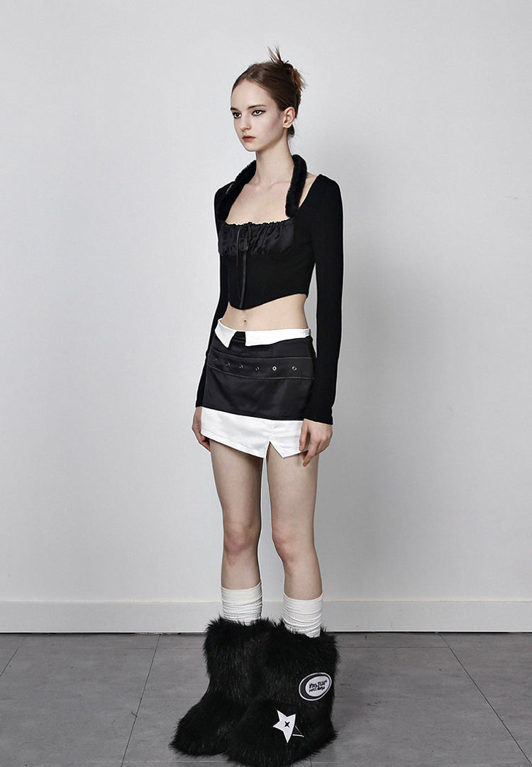 • The chest tie is adjustable in tightness, the fake herringbone and V-shaped hem design modify the waist shape, and the furry halter on the neck is detachable, adding a winter vibe.