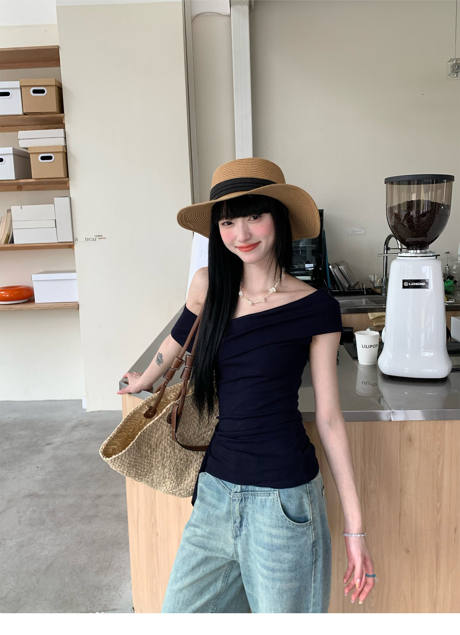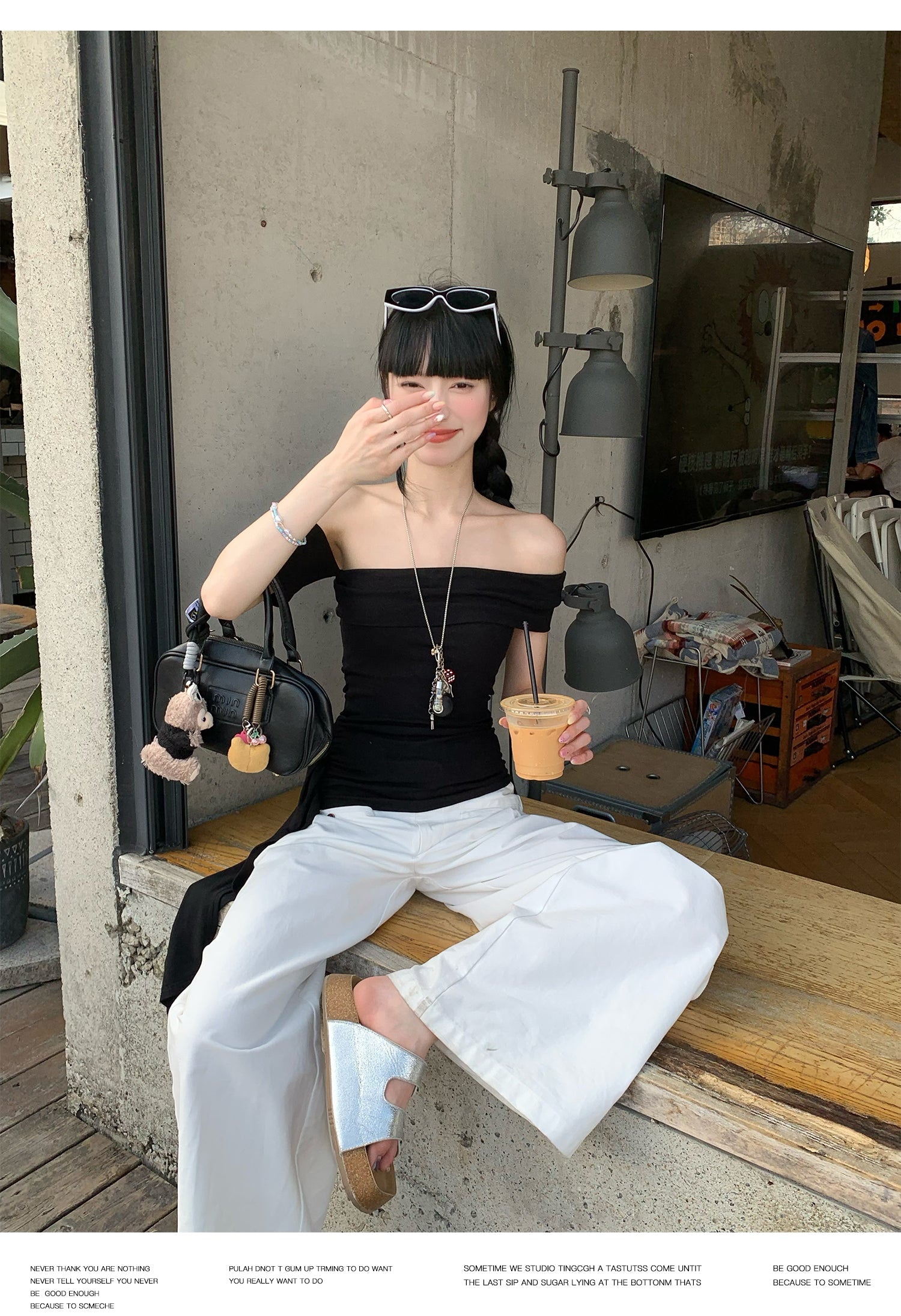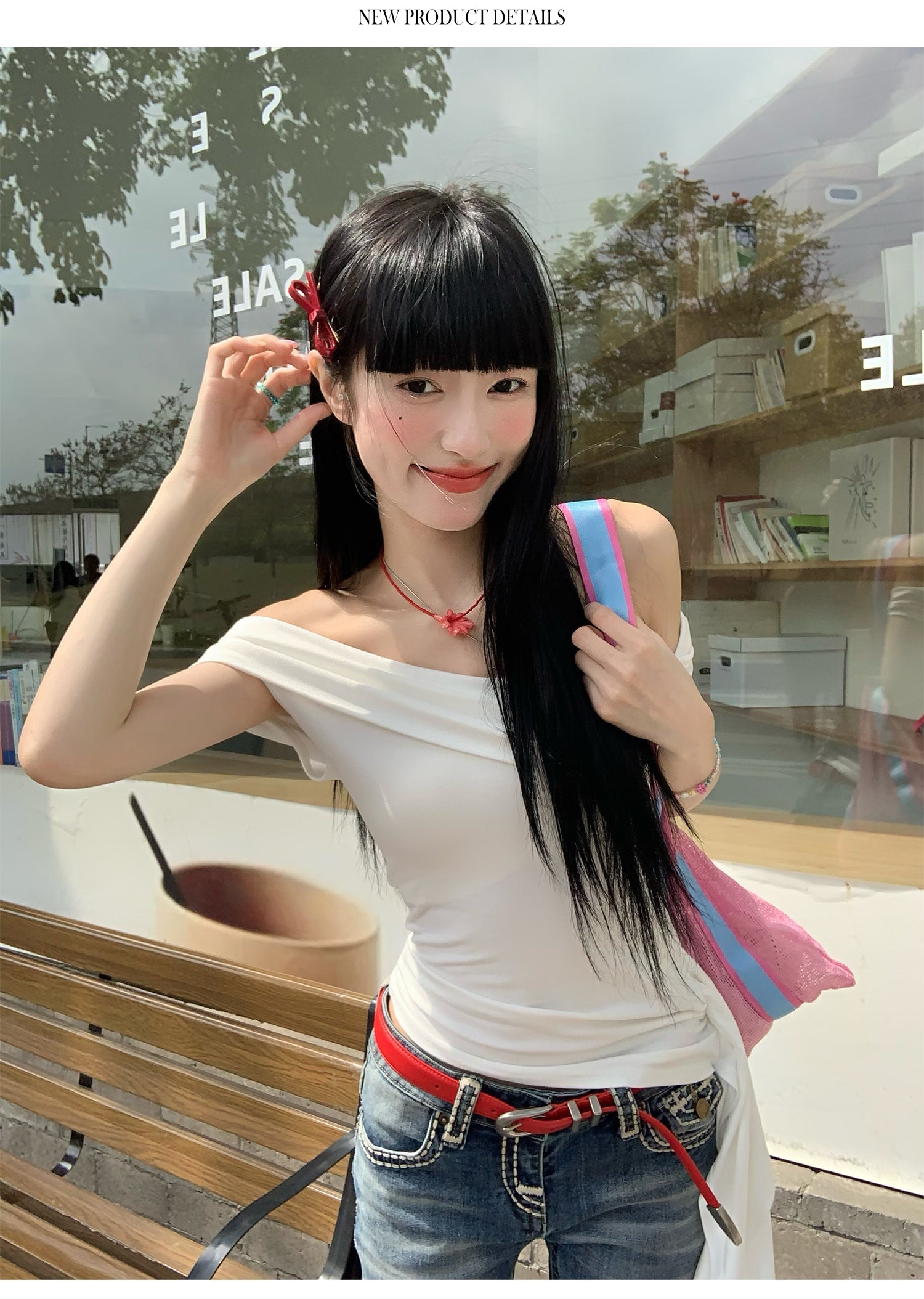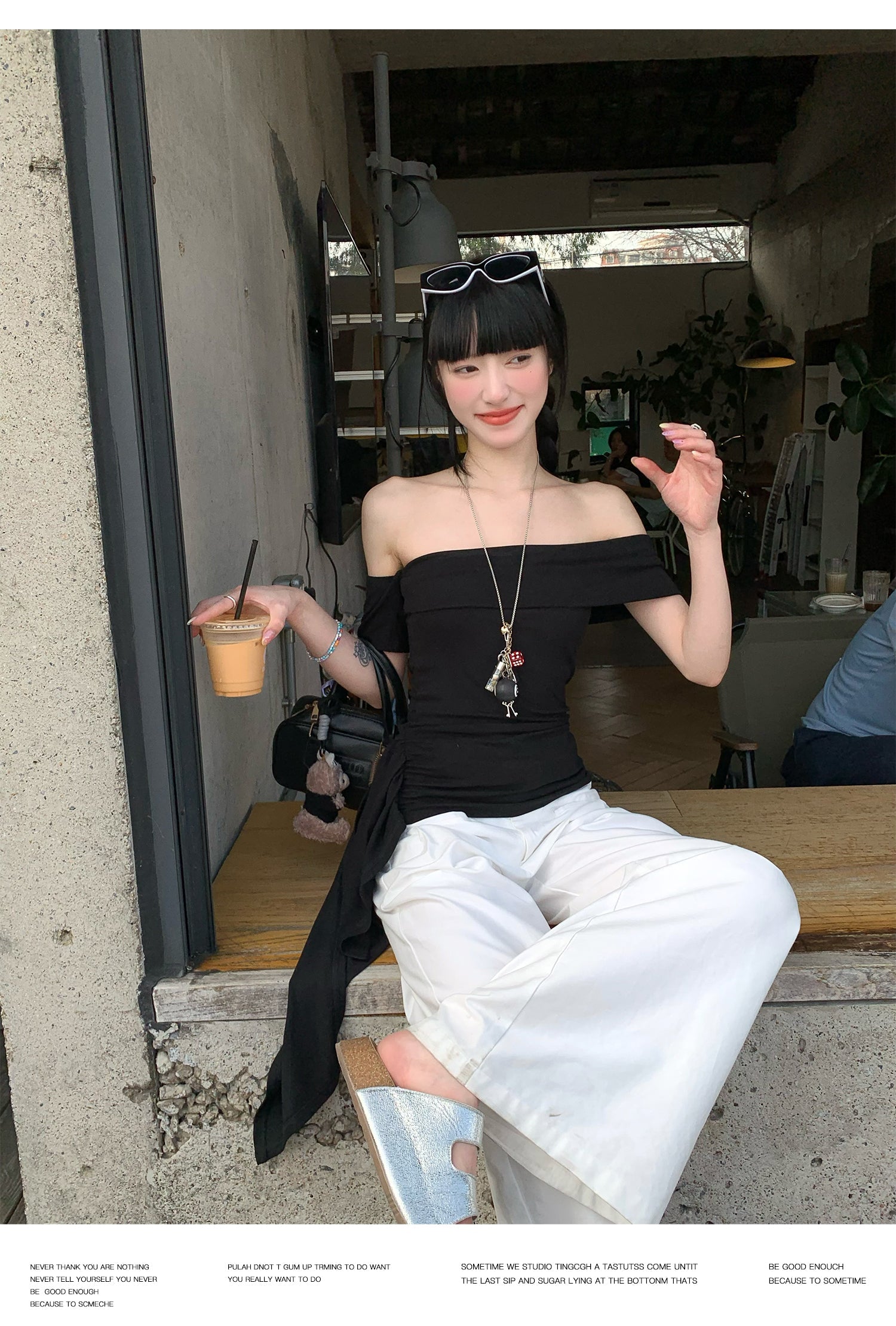 Black Ribbon Off-Shoulder Top