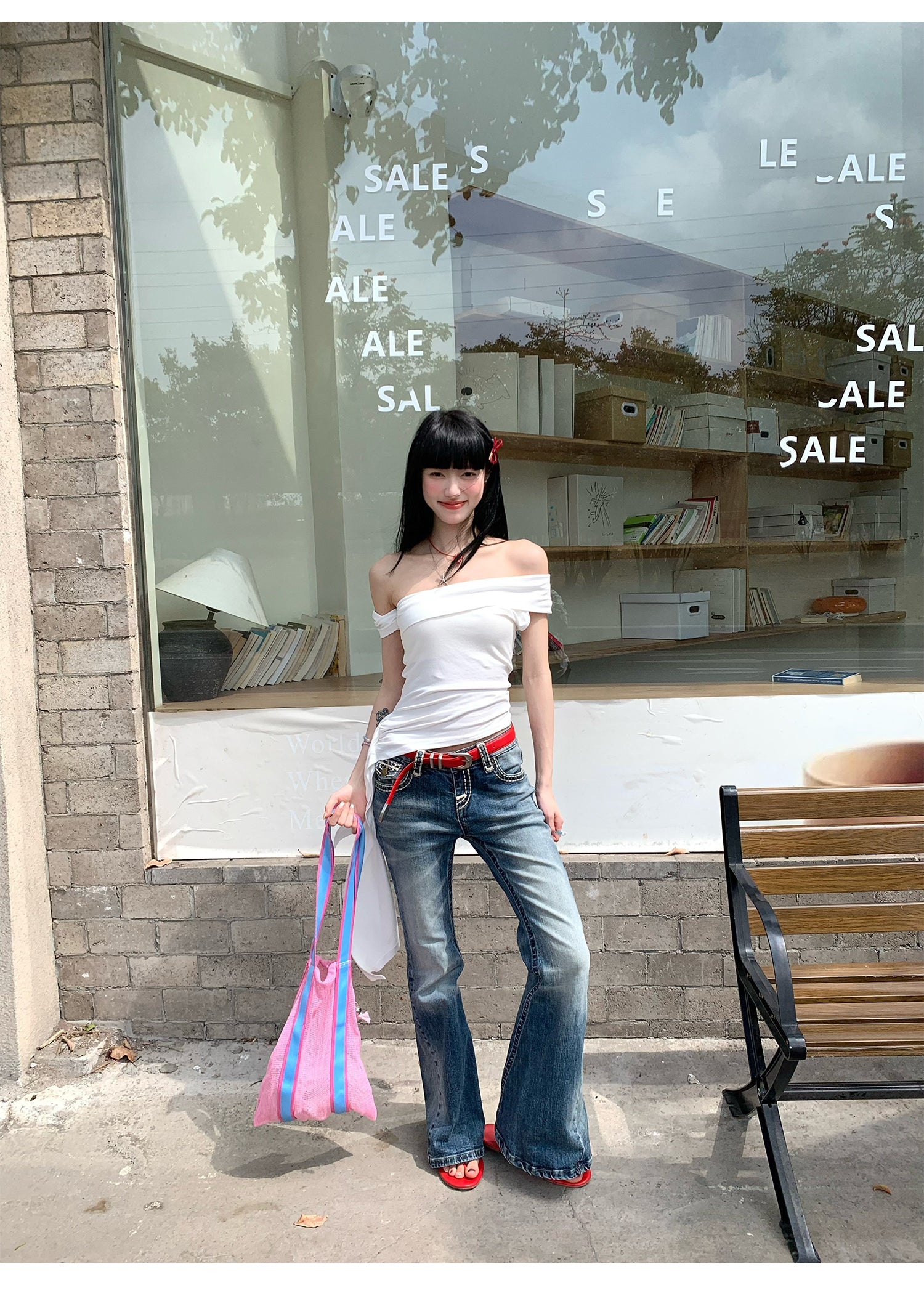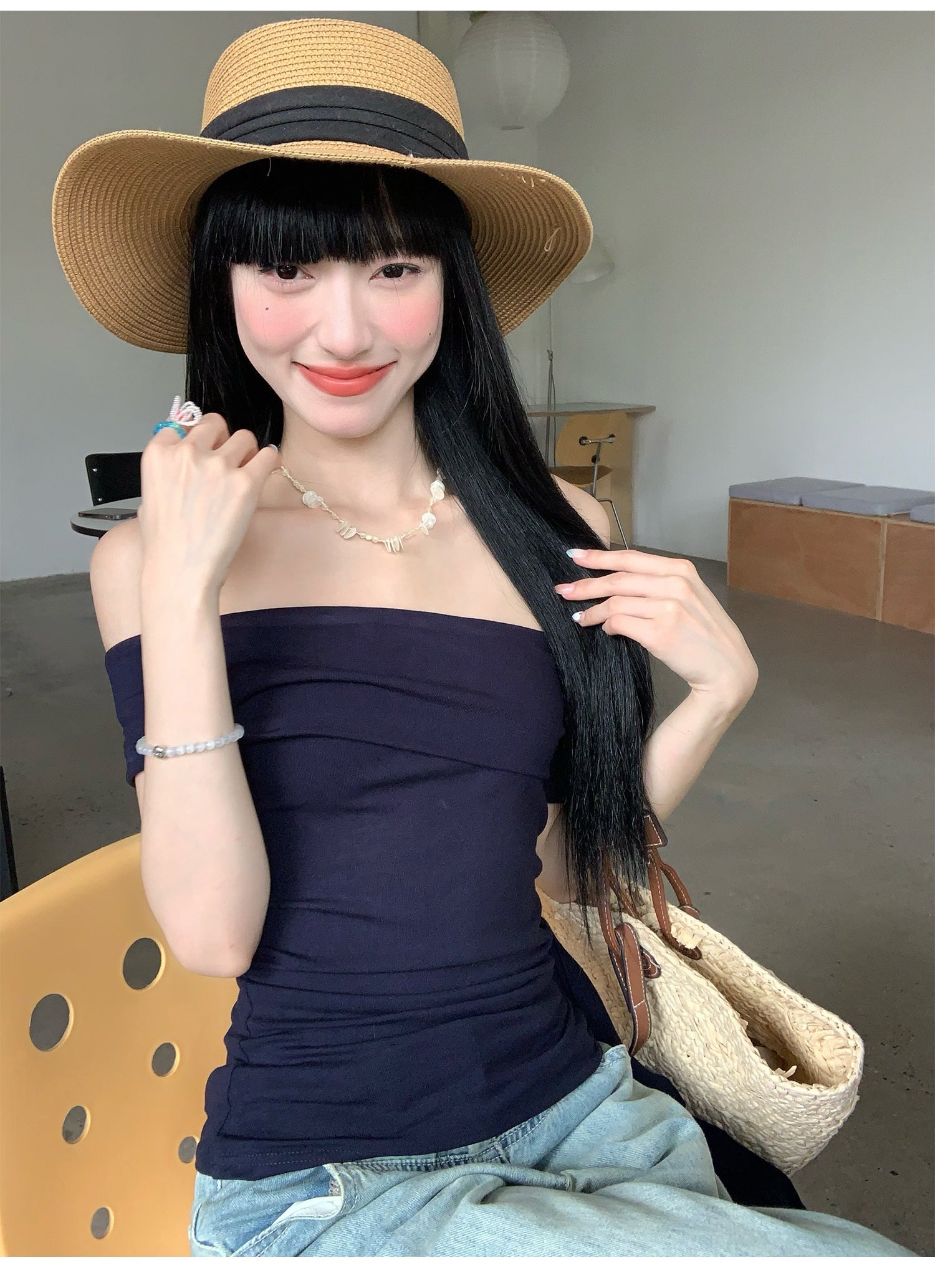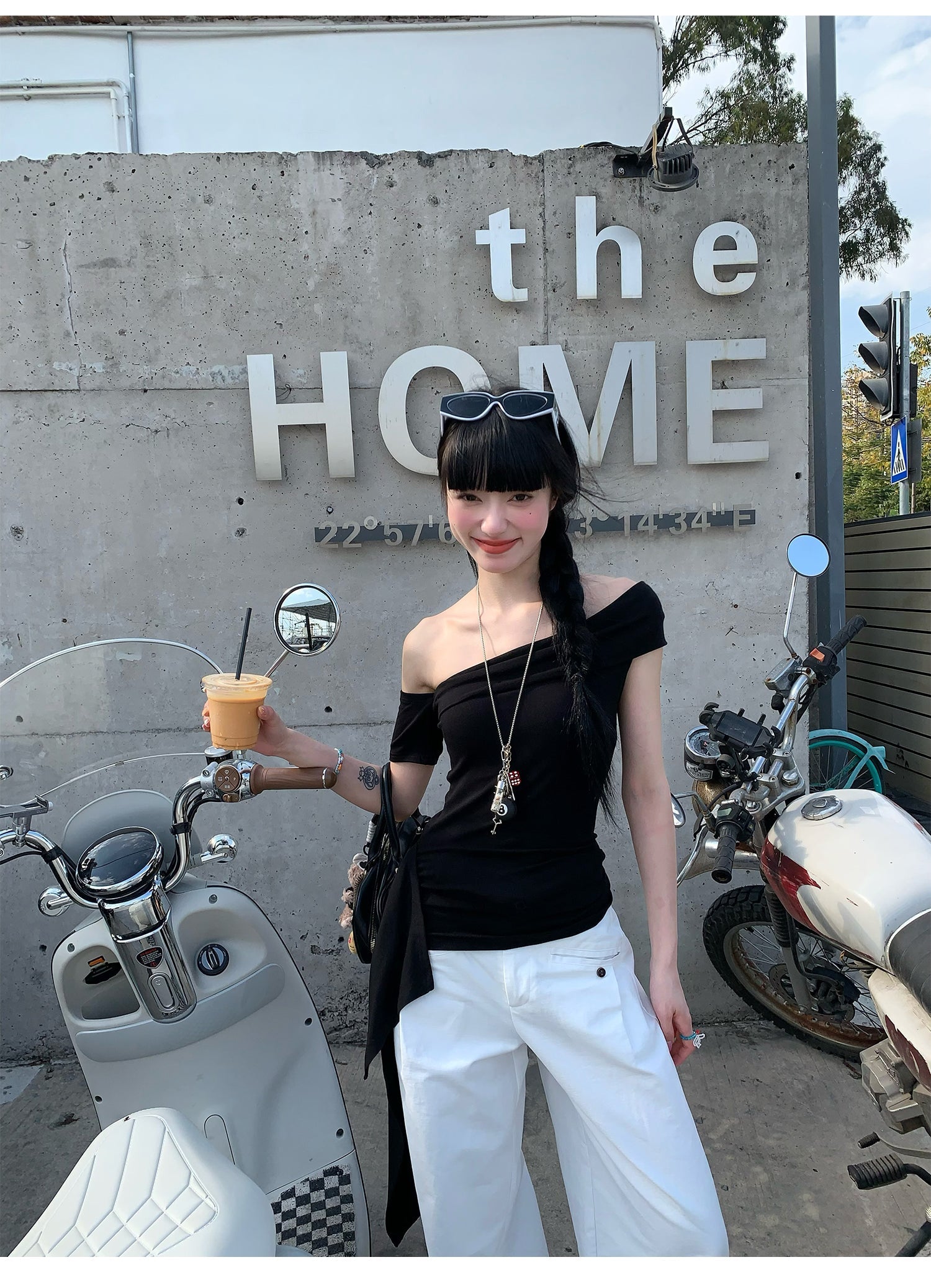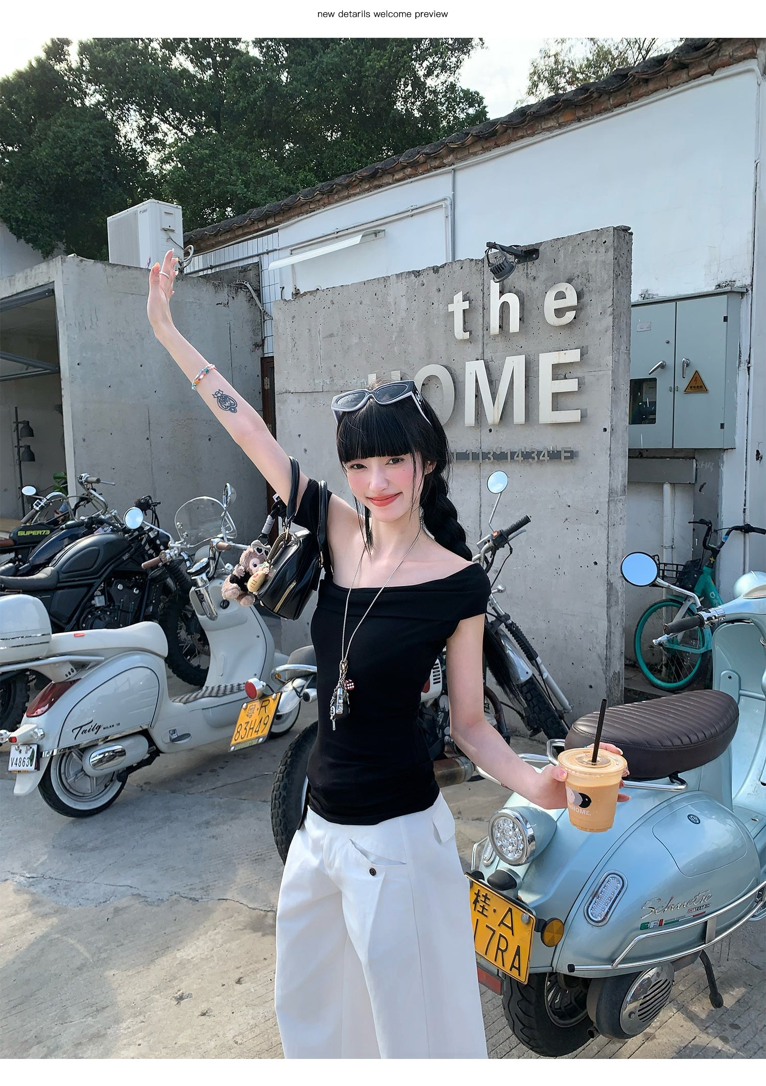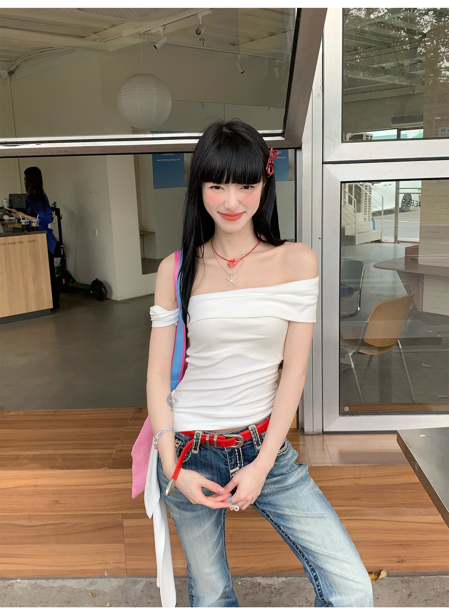 Black Ribbon Off-Shoulder Top