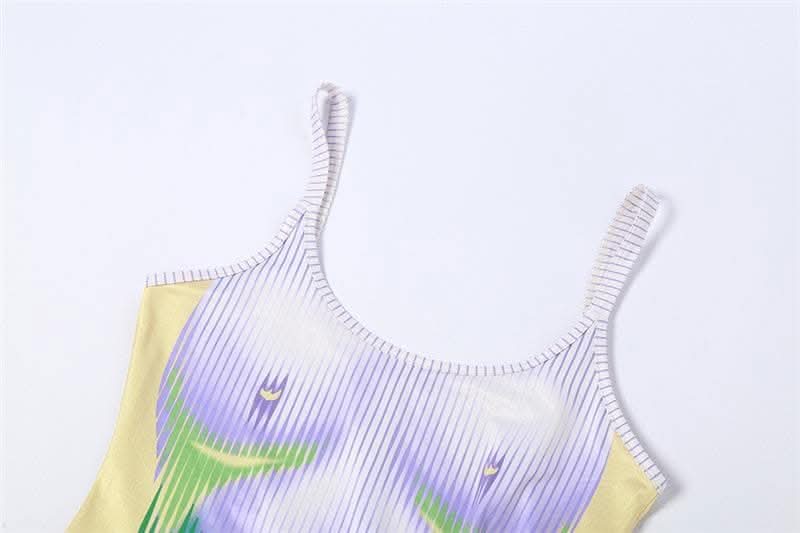 Body pattern u neck ruffle backless contrast cami maxi dress-final-sale