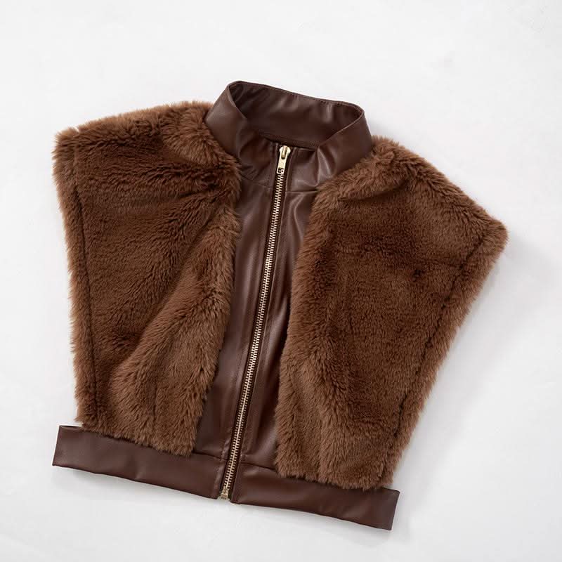 Cap sleeve fluffy PU leather patchwork zip-up mini skirt set