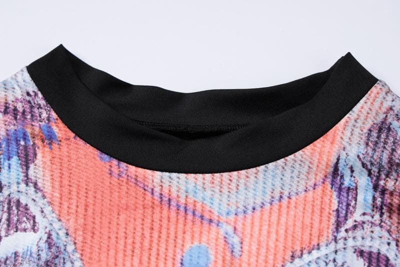 Contrast body print long sleeve high neck patchwork maxi skirt set
