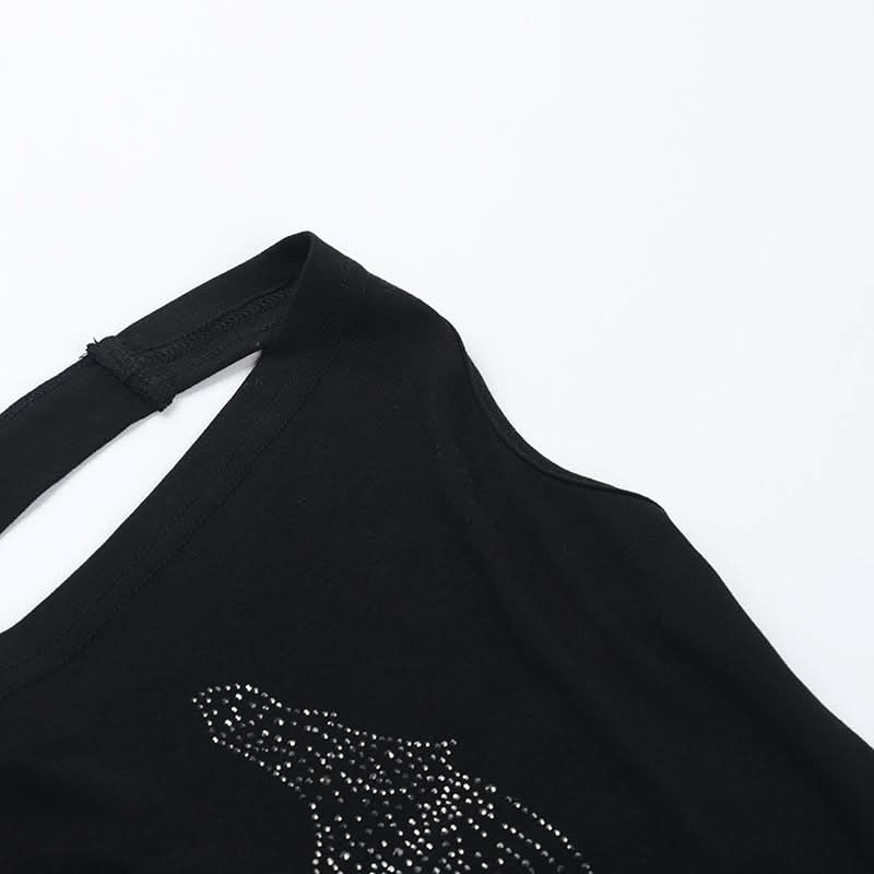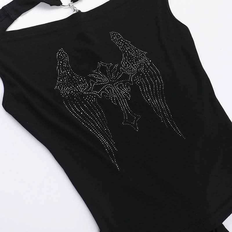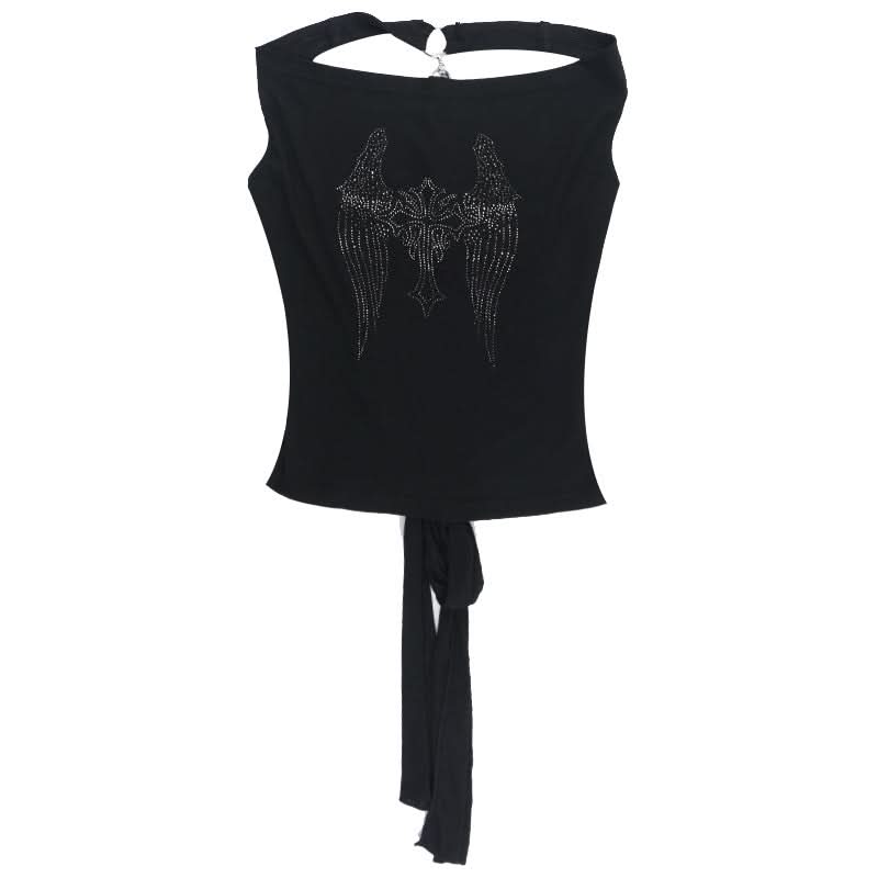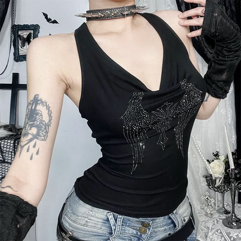 Cowl neck beaded cross pattern backless top