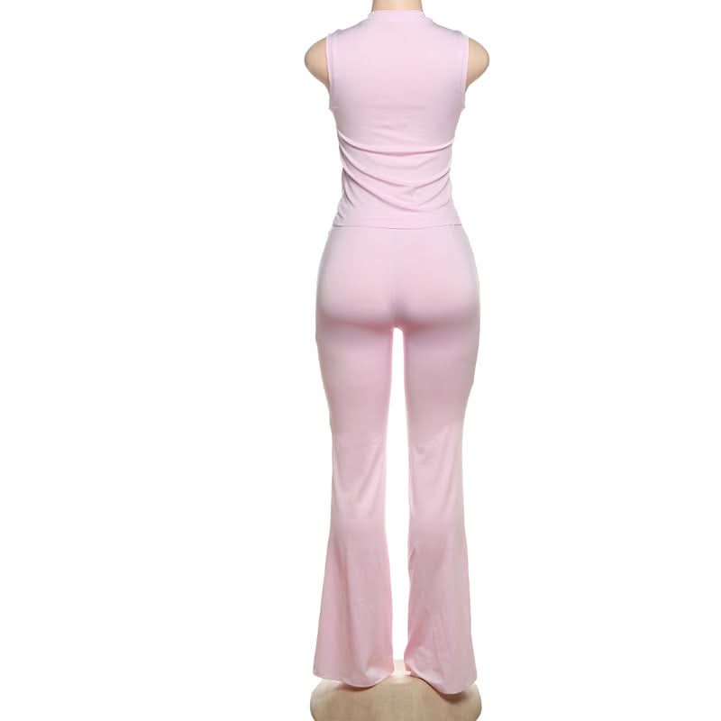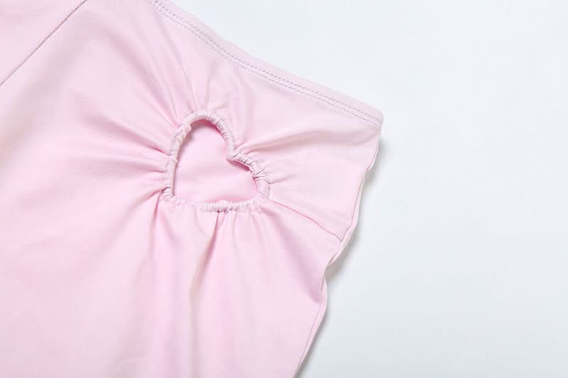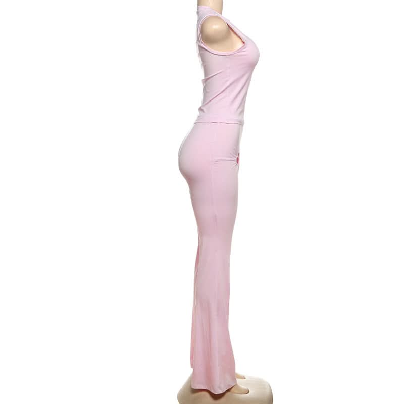 Crewneck heart hollow out ruched pant set
