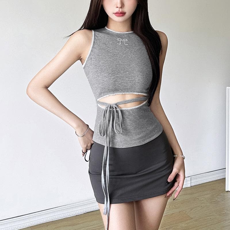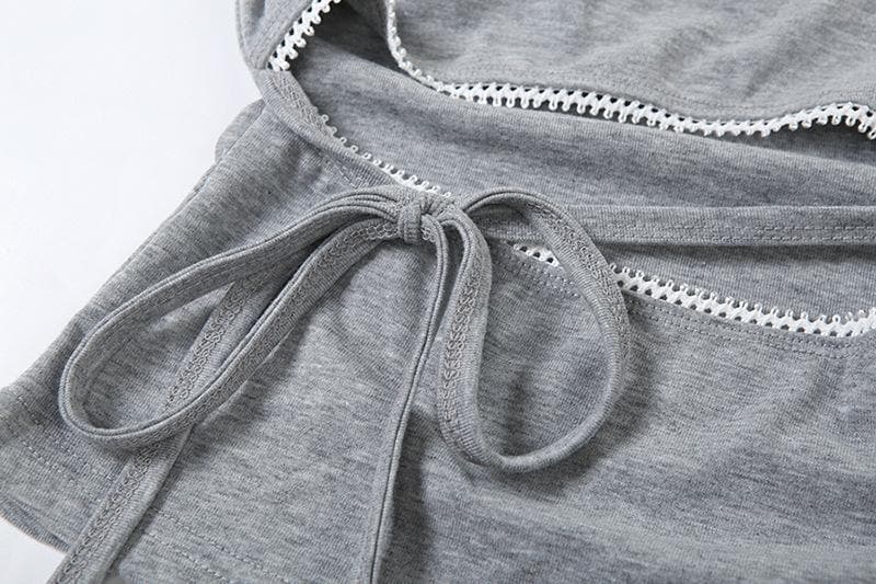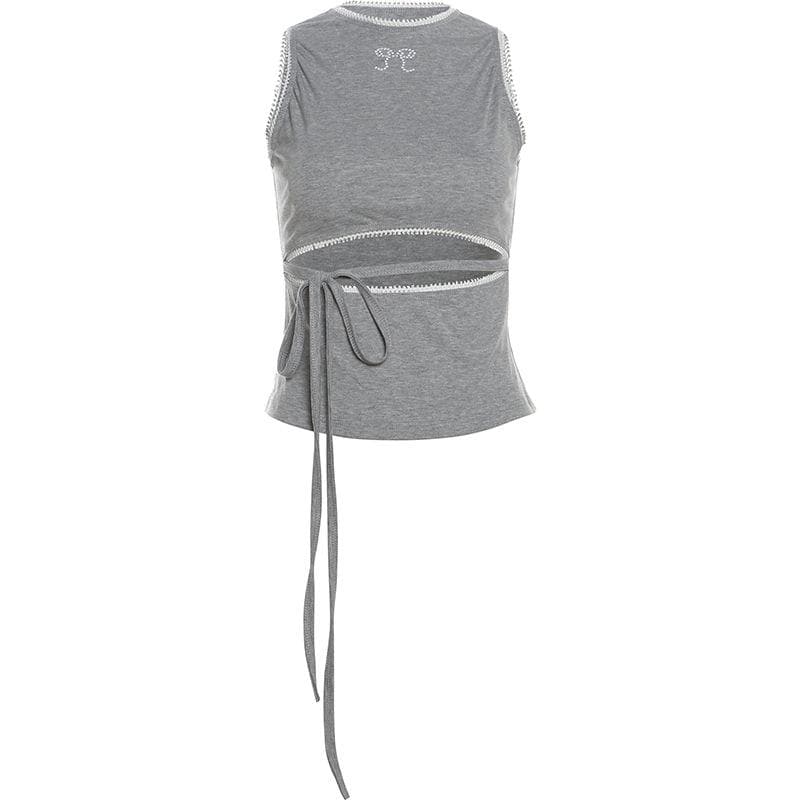 Crewneck hollow out self tie bowknot pattern cut out top