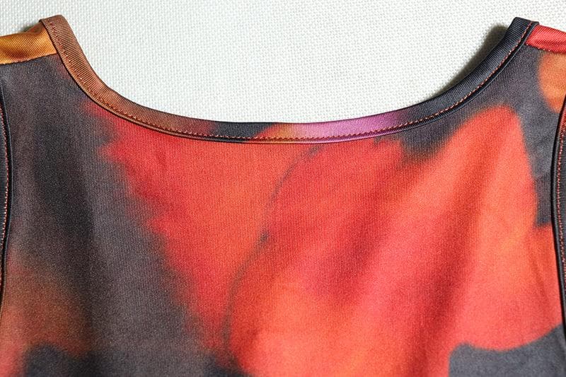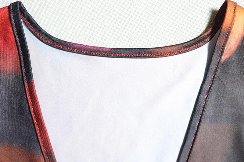 Deep v neck ruffle print self tie tank midi skirt set