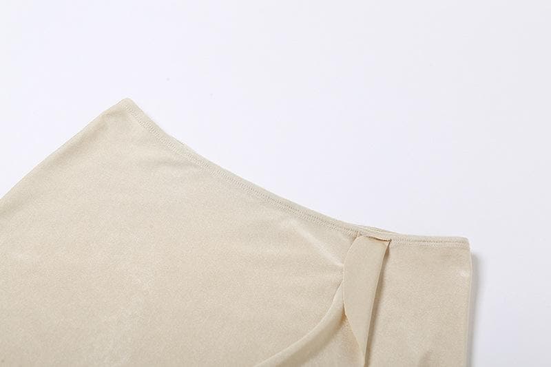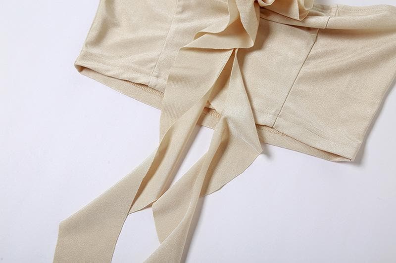 Flower applique solid ruffle irregular backless tube mini skirt set