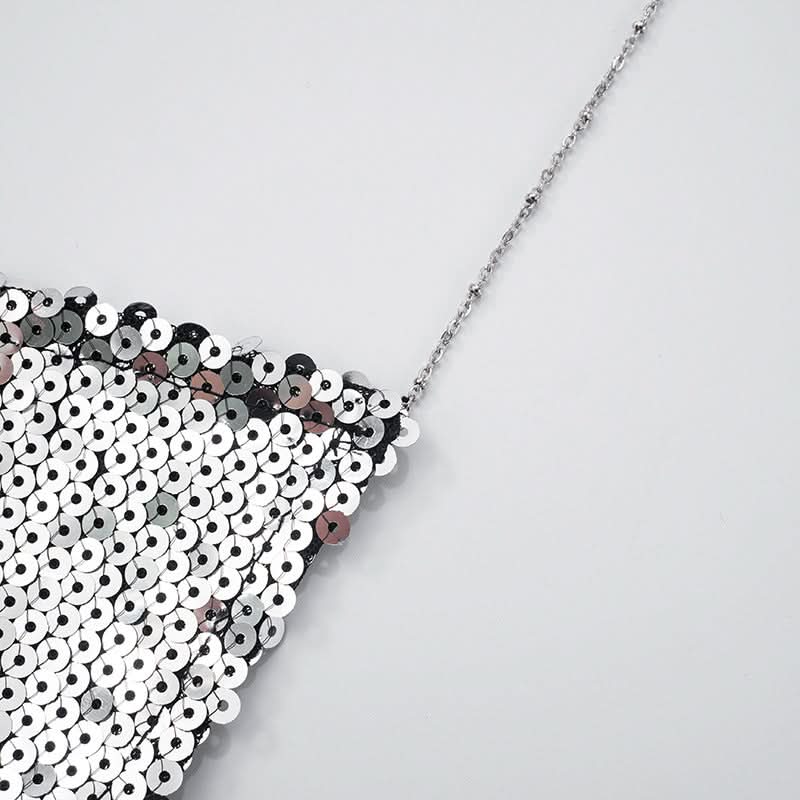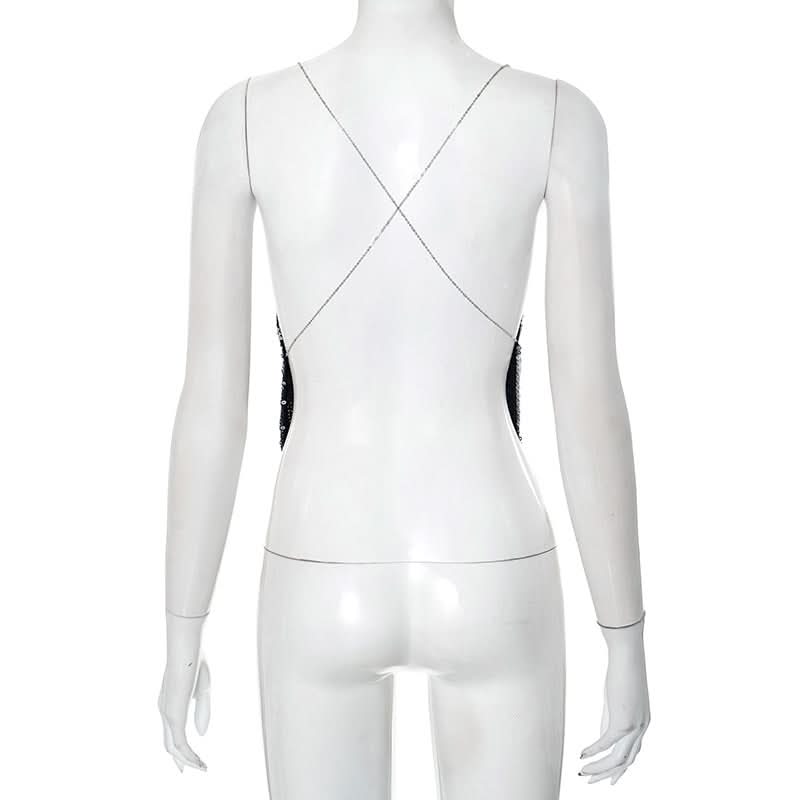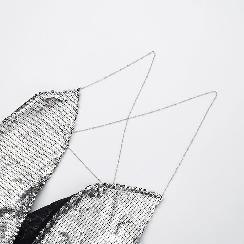 Glitter metal chain cross back cowl neck cami top